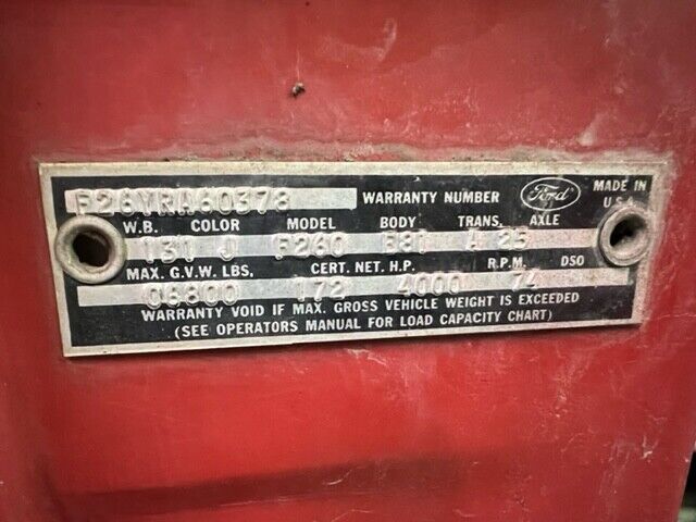 | Year: | 1967 | VIN (Vehicle Identification Number): | F26YRA60378 |