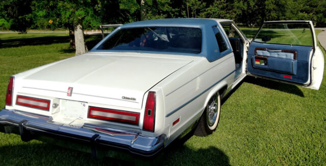 LISTING IS FOR 1977 OLDSMOBILE 98 REGENCY $200.00 NON-REFUNDABLE DEPOSIT REQUIRED for initiating purchase. Deposit will be applied to final balance payment due. LOCAL PICKUP ONLY. TRANSPORTATION MUST BE ARRANGED BY BUYER. Up for sale is this rare beauty!--- 1977 2-DOOR OLDSMOBILE 98 REGENCY. This car is in GREAT condition. It has been garaged for 21 years and only taken out to run the motor for a while and to run a few errands ( about 3000 miles). Battery is in good condition. The body of the car is white with slate blue vinyl top. It has a retractable sunroof. This vehicle has only had 2 owners and the 2nd owner purchased it in 1985. The car had 68,257 miles on the odometer when a brand new 350hp motor was installed in 2010. Since 2010 it has only been driven to local businesses and friends' homes ( approximately 3000 miles). Also a 400 rebuilt transmission was installed in 1994. The white wall tires have good tread. The spare tire in the clean trunk and spare tire cover came with the car in 1985, but probably needs replacing. All the front end parts were replaced in 2004. The entire interior seats of the vehicle were redone in cushiony tufted blue vinyl upholstery to match the blue vinyl top 2014. New carpet was installed in 2014 as well. The car's interior is in great shape. The vehicle had restoration done in 2001: passenger and driverâs doors, trunk lid and hood, and new lands down top on exterior were replaced. In 2011 the car was repainted and interior work was complete. This car garners lots of onlookers when driven! Car has Clear Title. These are things which need fixing: Transmission needs seal ; Air conditioner: clutch has stopped working; Gasoline gauge does not work.