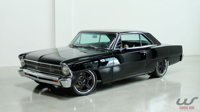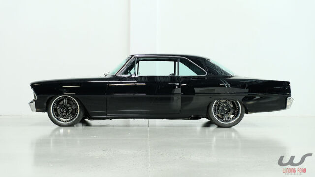 This fully restored, custom built Chevy Nova comes to us with just 547 miles since the build was completed. This no expense spare build was performed by Garyâs Rods and Restorations in California. Starting with a Schwartz full frame, a Connect & Cruise LS3 mated to a Tremec t-56 Magnum, six-speed manual transmission that powers the rear wheels through a full-floating 9 inch rear end. The LS3 was treated to a Magnuson 2650R supercharger which produces a whopping 715 horsepower. Bringing this Nova to a stop is a manual 6-piston and 4-piston Wilwood brake setup covered in three-piece Forgeline wheels wrapped in Toyo R888 tires. The exterior is finished in mirror-like black paint while the interior is wrapped in a high-end black leather which smells and feels like new. If you happen to get tired of listening to the wonderful sounds coming from the pre-rear axle side exhaust, this car has an ultra-high end stereo that will immerse you in the sounds of your favourite music.Every nut and bolt was replaced or refinished on this Nova and the list of custom parts and work is all documented via photos and invoices. This car has to be seen in person to appreciate the craftsmanship, detail and beauty that very few builds are ever able to accomplish. Skip the 2 to 3 year wait times on a similar build and enjoy this summer for a fraction of the price it would cost to replace this beauty.For more information, please do not hesitate to contact us at www.windingroad.ca.