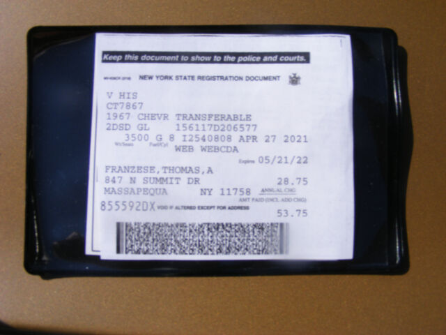 What I am listing here is a really nice 67' Bel-air.. This belongs to Thomas F. who is the adult son of my close friend..(he is currently building a garage and needs these funds)..His Ph# is: 516-660-5825.. Please call him for more details.396 Big Block 100% Pro rebuilt with mild cam...Turbo 400 trans 100% rebuilt with mild shift package... Factory 12 bolt positraction rear 3:08 ratio..100% rebuilt with Hotchkiss control arms and bushings... Perfect mellow 2.5" full exhaust... Aluminum Radiator... Factory front disk brakes with CPP rear disk brake kit... This entire drivetrain has less than 2500 miles on it and is "era" correct (came from a 67 Impala SS convert that was was way beyond restoration)... 15x7 Factory correct Rally Wheels on New Coker "red lines"... THE CHASSIS IS PERFECT!Look at the pics...Q-Panels have rust and a few rot holes... Doors are PERFECT... front fenders both could use lower rear patch panel (available everywhere)... minor rust around rear window moldings..Not rot... extra trim pieces "build sheet" all factory paperwork... Interior and glass PERFECT.. Everything works correctly... EVERYTHING except clock...I'm a retired bodyman.. the Q-panels are repairable, but in a perfect world, I would replace with either 1/2 panels or full panels from any of the dozen companies... You can call me for more details: John Tully 631-742-9796, but calling THOMAS will get you the real 100% true details.... All sales will go thru E-Bay.. Deposit thru E-bay and wire transfer or cash upon closure..................................................................