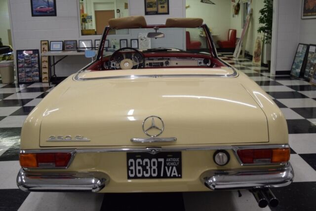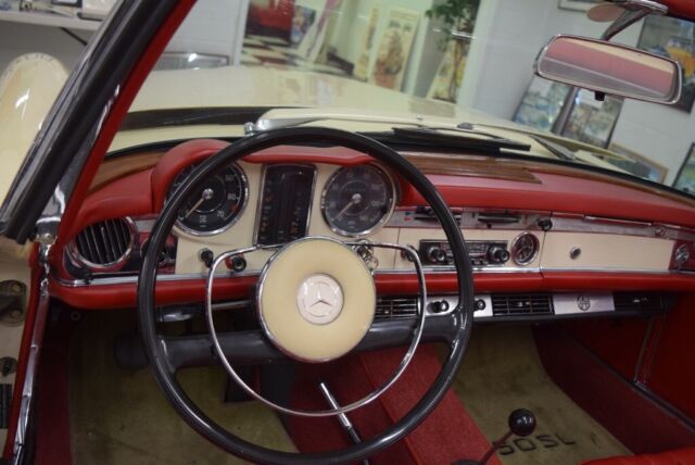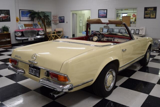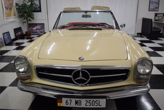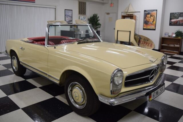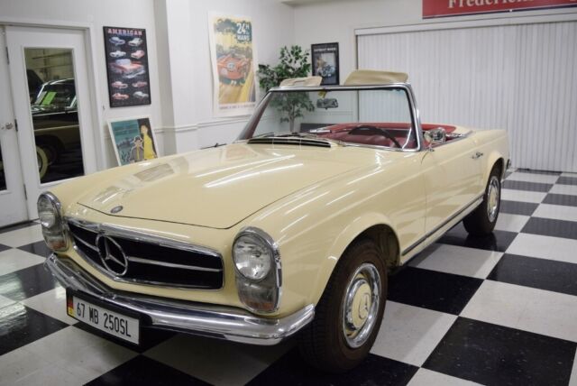 1967 Mercedes 250SLâTheâPagodaâ Series This250SL has only been owned by 2 families since new and is now available for thefirst time in 40+- years. It has been meticulously cared for and has recordsdating back to its original purchase from a California dealer. The 250SL was the second version of the W 113SL series and featured a number of improvements over the earlier version. It is also very collectible since of the48,912 SLs made in that series (1963-1971) fewer than 5,200 were 250SLs. · A nice repaint to the original Ivory finish· Beautiful red interior· 3rd seat· (1)46732 odometer miles, believed to be original· 4-speed transmission· Air conditioning· Both tops and storage stand· Records since new including books, original purchaseagreement and metal service plate A Wonderful Example! · Paint andChrome This SLâs paint was redone in its original Ivory anumber of years ago and still looks fresh. It has a deep shine and strong color. The chrome is in very good condition and nicelycompliments the paint. The pagoda hard topâs paint (same Ivory as body) is invery nice condition, as is the headliner. The convertible top is in good condition. · Interior The seat upholstery is red, contrasting nicely withthe Ivory exterior and is in very good condition. The carpeting is red. The wood trim on the interior is in good condition asis the red dash covering. The instrument cluster and the rest of the interiorlooks very nice. · Engine The carâs 2.5 liter fuel-injected engine starts andruns nicely. It has plenty of power topull this car along briskly at modern highway speeds. · Transmission The transmission is 4-speed manual. · Comfort andSafety Systems ThisMercedes is truly a 4-season car, equally comfortable with the convertible topdown or the pagoda hardtop installed. This250SL also has Kuhlmeister air conditioning, but it will need servicing. It is also a car where all the safety featuresworkâhorn, lights, wipers, turn signals, even the clock works. The mark of a great Mercedes! These 250 SLs were equipped with power-assistedsteering and power disc brakes. A Very Nice Example of one of Mercedes MostSought-after Sports Cars Findinga largely original example of the limited production 250 SL series is a rareevent. These cars are highly in demandand therefore represent not just a great driving experience but a soundinvestment as well. And if there wasever a sports car that made you feel as if you are driving on the Autobahn,this 250 SL is it! And of all the sportscars with removable hardtops, there is noârepeat, noâcarthat we know of with greater visibilityâor styleâwhen its signature pagoda hardtopis installed. FOR MORE INFORMATION CALL USAT:540-370-4474