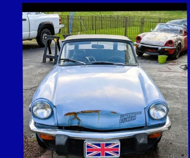 Classic 1975 Triumph Spitfire 3rd Owner. Removable hardtop including a rolling stand to secure the hardtop when its not on the car. Convertible top is in great condition, manual trans with overdrive. Completely rust free from top to bottom and has always been kept inside. No dents. The history is as follows: (see pictures) The engine and transmission ran 100%. I accidently damaged the hood when my truck was backing in reverse. Salvage yards wanted $600 for an average looking hood so I found a 1974 spitfire smashed in the rear. Perfect front, seats, interior and manual overdrive transmission. I never liked the light blue paint color of my car so I decided to make it a little project. I removed the inside interior of both vehicles. I painted the engine, the inside floor boards and around other areas, installed the manual overdrive transmission (mine didn't have OD), stripped and sanded down the entire car (including the inside door panels, hard top, underside of the hood as well as the shelf under the hood where the master cylinder, battery tray, wiper motor, etc. are located. The tires look new. I purchased many items from Moss Motors that I'm including. Shortly thereafter I had a heart attack and bypass surgery. Since then my energy level hasn't been the same. All the parts that I removed are in boxes on shelves, including all the nuts and bolts and are stored inside my warehouse including all the extra parts I took off the 1974 model. Plenty of additional parts and manuals are also included. At this point the right fender needs a little more sanding, a paint job, reinstalling the interior as well as the items I removed for painting. The original manual transmission may still be available as well as the complete engine that's in the 1974 Spitfire. Additional pictures can be sent upon request. My business has been selling on Ebay since 2000 and our feedback reflects our honesty when listing any item. Can be contacted at 215-669-3913 with any questions.Payment Terms: The successful high bidder will submit a down payment of $500 deposit within 2 business days of the close of the auction to secure the vehicle. Buyer agrees to pay remaining balance due (plus applicable fees and taxes) within 7 days of the close of the auction. All financial transactions must be completed before delivery of the vehicle.Payment Methods: Cash (in person) or bank transfers.Fees and Taxes: Out of state buyers are responsible for all state, county, city taxes and fees, as well as title/registration fees in the state that the vehicle will be registered.