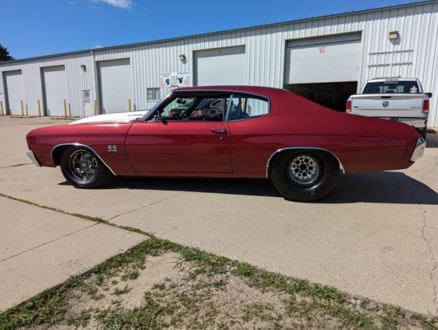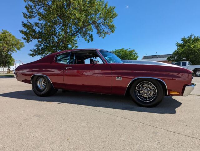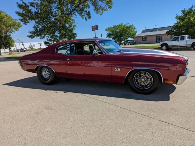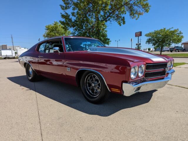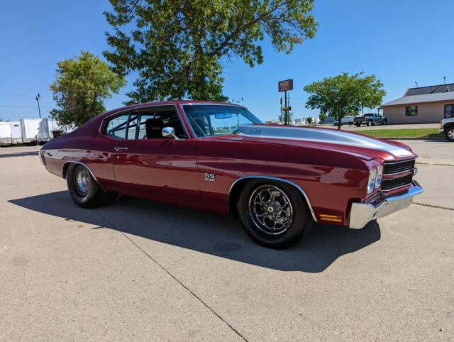 1970 Chevelle Pro Street -100% street legal with all lights and signals functional! Pump Gas motor!!-All professionally done by Chassis Engineering!! $40K build alone in the chassis and cage!!!!-Gorgeous Burgundy base coat clear coat paint with the silver SS stripes cleared over. Extremely nice paint on this car!-All Chromoly cage Tig welded-Professionally built 632 Big Block Chevy pump gas motor! 10.5:1 Compression. 1000HP on the motor alone!!!-Jesel shaft rockers-Jesel belt drive-Brodix aluminum cylinder heads-Brodix aluminum single plane intake manifold-Custom built lemmons headers-Merlin block-4.600 bore x 4.75 Stroke-Eagle rods-Callies Crankshaft-Wiseco pistons-Comp roller camshaft-Induction Solutions Nitrous plate installed for even more power!-PTC TH400 Automatic transmission with reverse manual valve body and Pro trans brake-PTC 3500 stall converter-Rack and pinion steering-Wilwood 4 wheel disc brakes and master cylinder-Custom carbon fiber inner fenders-Fab 9 Rear with Strange engineering third member and 4:11 gears-Top Gun 4 Link -Chromoly massive anti roll bar with billet arms-Global West tubular upper and lower control arms-QA1 adjustable coil over suspension front and rear-Moroso vacuum pump-Meziere electric water pump with huge 4 core aluminum radiator with dual electric fans. Cruise all day long and it wont overheat!!-Absoulutely beautiful underneath this car! All the backhalf work was painted and cleared inside and out-Weld racing wheels-31x16.5 Hoosier radial tires!!-All steel car except the hood which is a bolt on glasstek hood-Glasstek custom dash that comes completely out with a few dzus fasteners-Autometer InVision digital dash. Has every gauge from Speedometer, tach, fuel level, oil pressure, water temp, and voltage!!-Kirkey seats*A ton of money invested in this car!! You could not build it for our asking price! This car is an absolute blast to drive and gets a ton of attention everywhere it goes!! Dont miss your chance to own this killer Pro Street 70 Chevelle!!!*Many more photos on our website at www.aamusclecars.com*We work with many classic car finance companies and you can apply right on our website!Call or text7o1-3o6-9424A&A Muscle Car Motorsports LLC705 Main Ave EWest Fargo ND 58078