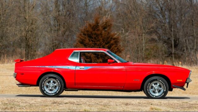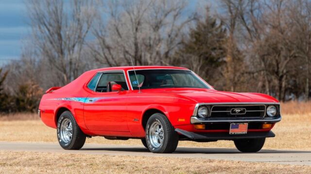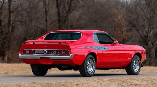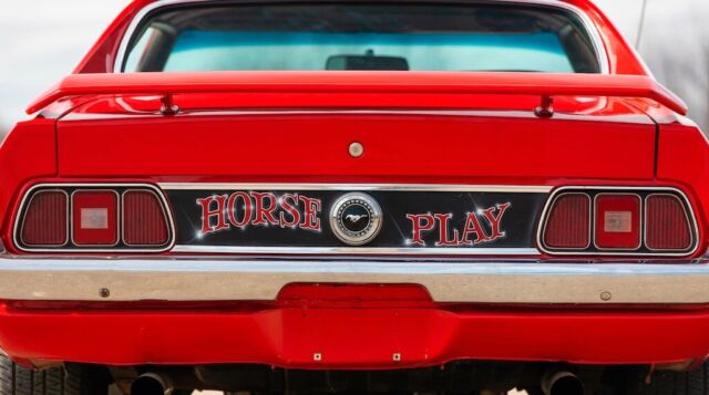 1972 Ford MustangKnown as Horse Play351 CI V-8 engine4-barrel carburetorAutomatic transmissionPower steeringFinished in Red with custom Horse Play graphicsGray and Black interior cloth and vinyl with Red pipingBucket seats with Horse Play stitchingAir conditioningToshiba AM/FM/Cassette radioFront and rear spoilersPolished Cragar SS 5-spoke wheelsKumho White-letter tiresAttracting attention is no problem with this attractive 1972 Mustang hardtop known as âHorse Play.â Painted bright red with flowing, custom side-stripe graphics and âHorse Playâ on the rear panel, the Mustangâs customization continues into the interior with black and gray cloth and vinyl with red piping for the upholstery, door panels and center instrument panel. The âHorse Playâ theme follows through on the high-back bucket seats with custom stitching on the seatbacks. The interior is also equipped with a three-spoke steering wheel, gauge pod and Toshiba AM/FM/cassette radio, while the exterior is adorned with a Boss 351-style front spoiler, painted rear pedestal spoiler and polished Cragar SS 5-spoke wheels with Kumho white-letter tires. Notably, the hardtop is powered by the 351 Cleveland 4-barrel engine, which was the top-of-the-line engine for the 1972 Mustang. The canted-valve powerplant is equipped with a K&N open-element air filter, aftermarket coil, braided hose and air conditioning. The hardtop also features an automatic transmission and power steering.