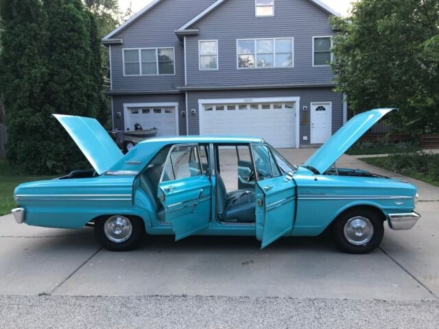 SCROLL DOWN FOR 100 PLUS MORE PICTURESLOW RESERVE / LOW RESERVE / LOW RESERVE / LOW RESERVE / LOW RESERVEThis 1964 Ford Fairlane 500 Sedan V-8 260 is in good condition.The 260 V-8 Engine block is original including the heads, intake manifold, carburetor, distributor and fuel pump. It is very rare to find all matching on a car that is 57 years old. The C4 Automatic Transmission is also original. In fact, the whole car has mostly original components from 1964, Including, the manual steering box, generator alternator, hood latches, glass and even the spare tire and rims are original. This car has no fillers in the body panels, and they are original panels. There is a small dent on the driver rear quarter where it meets the bumper. The paint is nice.The fenders were wet sanded and look awesome but the rest of the paint was never sanded and buffed. The car is not waxed. Paint is still workable. The body panels are all rust free. The dual exhaust did wonders to the 260 V-8 power. The sound is awesome!! Sounds as good as any muscle car out there. The engine does not leak one drop of oil and the engine has no sludge build up. The block and heads were completely rebuilt with all stock components about 10 years ago, and the car was in storage mostly since then. The carburetor was just completely rebuild by a professional re builder that specializes in just ford vintage carburetors.( see pictures). The front and rear brake cylinders and pads are new, and the front brakes hardware and drums are new. All four tires are brand new and the correct size (185 / 70 R14 / 88T. The car by no means is show room quality but its close. and sounds great. The interior seats were done by professionals and it shows. The light blue vinyl on the seat ends and in the middle of the seats is original, so are the door panels. The carpet is aftermarket but the correct color. This is a nice car and the matching numbers means a lot. This car starts right up and doesn't' blow smoke or make any engine noises. the transmission shifts properly. Always call if you have doubt. Issues I Know About: 1) The rear driver door only opens from the inside. 2) The floor pans have been replaced / repaired. 3) The head Liner has tears. 4) Some of the rubber door molding and other interior moldings / trim need replaced. 5) The antenna is broke. I can quote you anywhere in the USA for shipping. Mike 630-517-8806 LAND LINE..NO TEXTING