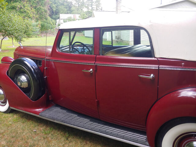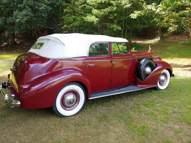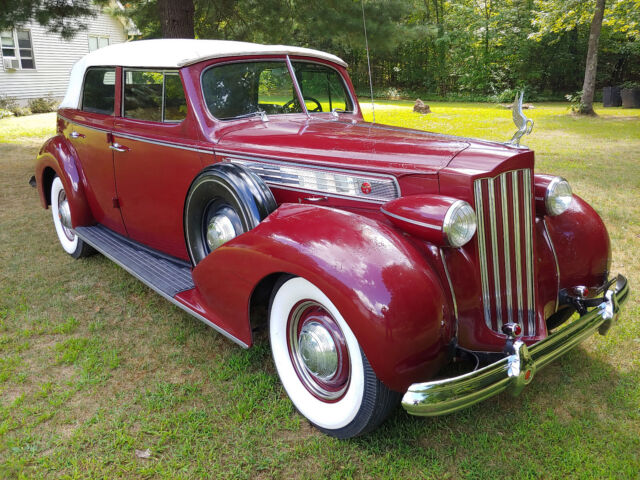 1939 Packard Super 8 convertible sedan model 1703, body 1277. Eight cylinder 320 CID engine w/ 3 speed transmission. This is a rot free extremely solid, straight California Car. Originally sold by Earl C. Anthony Inc. California Distributor in 1939. The odometer is showing 121,479 miles however, engine was rebuilt in the 1980's at around 100K and hasn't been driven much since. Engine is in perfect mechanical condition and runs smooth and whisper quiet, no smoke strange noises or funny odors.Recent work done : New clutch disc, pressure plate assembly, throw-out bearing, pilot bearing, U-joints, four tie rod ends, king pins, center steering crank pin assembly, rear brakes, motor mounts, rebuilt generator, rebuilt starter w/ new solenoid, oil pan gasket, rebuilt carburetor, clutch linkage, steering column shift linkage, new reproduction oil filter assembly by R & A Engineering, newer exhaust system w/ resonator, recent fluids change, turn signals added. The transmission was replaced with a unit that has only 45K miles on it. Car is mechanically in perfect condition. When I purchased this car it had the wrong side mount covers on it but, have since acquired a correct set. That would explain them being of different color than that of the body. Interior is in excellent condition, rear seat has fold down center arm rest. Most of the chrome is in excellent condition and some of it is in show room condition. Nice dash with all gauges and speedometer in working order. The radio and clock are not working. The convertible top is of good driver quality and works as it should but, would need to be replaced for show. The original lacquer paint is cracked and chipping off all over the car. Previous owner (elderly Gent) tried doing a little touch up on his own. Using a paint brush he painted over the areas where the paint was chipping. The worst parts are the front fenders and hood area, some in the back above trunk lid and rear fenders. If you look closely at the photos you will be able to see how lousy the paint is. The sides of the car have the best paint. There is a small ding in the driver's door which I will provide a photo of this. Any questions please feel free to write. Car is available for inspection, just let me know when you would like to check it out.I will accept cash, bank check (car will not be released until check clears), electronic bank transfer. Car must be picked up within 30 days of purchase. It will be stored indoors until pickup. Full payment within 7 days of purchase.