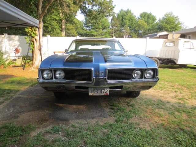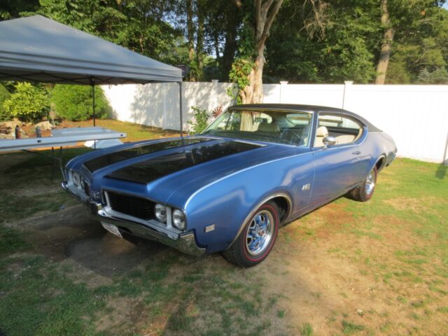 For Sale a very solid and well equipped 1969 Oldsmobile 442 Holiday Coupe. The car is originally from Iowa and came to New England in 2000. This shows when you look at the pictures of the Frame, Floors and body panels. I have taken pictures of the inside of the floors with no carpet or insulation to show how original and solid they are. And I installed a new carpet. The body is very solid and straight. The original matching # 396026 400 ci 350 horse power engine runs very strong and is paired with a non-matching number but correct application Muncie M20 wide ratio 4 speed transmission that shifts great. The updated 12 bolt posi rear end with 373 gears is in excellent condition. Other options include power steering and power disc brakes, Air Conditioning (not working but complete), power trunk, rear window defogger, glove box and trunk lighting, Oldsmobile Super Stock Wheels and BF Goodrich TA Red Line Radials. This is not a show car but it is a very nice driver. There are many new parts, Battery, Brakes, Brake lines, Clutch, Pressure Plate and Throw out Bearing, Carpeting, Aluminum Radiator. This is a get in and go car that can be enjoyed or taken to the next level. Things that are not perfect are the Paint, it looks to be about 25 years old and is starting to fad, a few chips and scratches but presents well. The car was originally Saffron Yellow outside. There are a few bubbles under the driver's side of the Vinyl Roof see picture. The rest of the roof is very solid. There is one quarter sized spot behind the passenger rear wheel opening that has been repaired. The front crank seal seeps some oil along with the rear output shaft seal on the transmission. Neither one is major. I have more pictures of all I have described that I could not fit in this ad. If you want more details please contact me and I will send more pictures or call you directly.