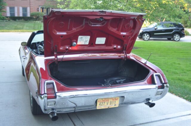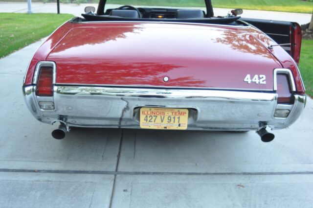 1969 Oldsmobile Cutlass 442 ConvertibleAUTHENTIC 442 with Original Factory Window StickerRARE FIND VIN#344679M426546I am selling my 1969 REAL DEAL Oldsmobile 442 Convertible with original window sticker. If you are seriously interested in buying my car you can call me at anytime as ALL calls will be returned and I can send you the window sticker. I have owned this car since 2014-2015 and it came from San Diego California. This car was purchased new from BARKER MOTOR COMPANY in Bloomington, Illinois. The way you see the car is the way I bought it and only sparingly driven on family nights in the Summer and car shows then back in the heated garage. The entire engine was rebuilt to 455 specs and the transmission was rebuilt. I replaced the standard radiator with a heavy duty 4 core aluminum radiator to keep it cool. ALL of the engine work was professionally done by the previous owner in CA and I have all the paperwork and receipts explaining what was all done and will supply them to only interested parties wanting to buy. This car was restored by the previous owner who did a fantastic job as the paint still shows amazing including the door jambs, under the doors, the trunk lips and the hood and engine compartment. The chrome bumpers are immaculate. All of the glass is intact no cracks or chipping. You can see the door skin lines all around same with trunk and hood. All options work including:FACTORY TIC TOC TACHOMETER AND CLOCK WORKSFACTORY 8 TRACK PLAYER WORKINGTRUMPET TIP EXHAUST BUMPER WITH TIPSFACTORY POWER CONVERTIBLE TOP WORKS (VIDEO)COURTESY LIGHTS BY YOUR FEETHI BEAM LOW BEAMS TURN SIGNALS WIPERSFACTORY IGNITION BUZZERFACTORY RALLY WHEELS WITH TRIM RINGSI also have videos of the top going up and down and the awesome sounding engine and exhaust. I also have pics of the cowl plate. This is what is considered a turnkey muscle car that is RARE and hard to find in this condition. Less than 4700 produced. The convertible top has no rips or tears in it or signs of wearing, the interior seats are free of rips and tears along with the interior trim door panels. The dashboard is pristine and free of fading and cracking. NO TRADES. NO PAYPAL. Accepted forms of payment are wire, cash or certified cashiers check/money order. Full payment is due within 72 hours of end of auction. If you want to send an inspector do so before bidding. Car is located 15 minutes from O'Hare International Airport Chicago, IL. If you need it shipped I can help arrange shipping though buyer pays. REAL DEAL 442 Convertible with title in hand. 442 Runs, drives, idles excellent.