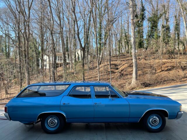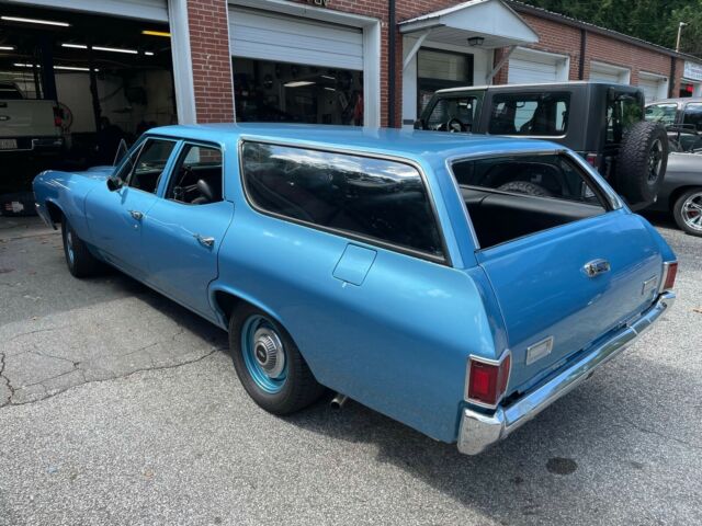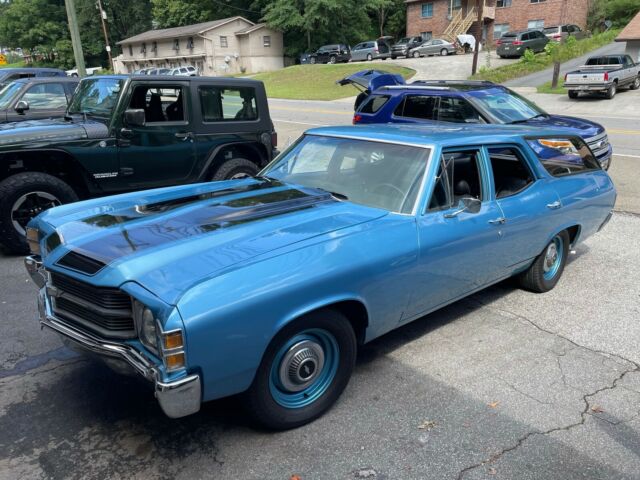 Up for sale not on sale is my 1971 Chevelle station wagon.This car starts, idols, shifts, steers, runs and brakes like it was originally designed to.GM 350 (330 hp) crate engine with aluminum intake and 4 barrel carb. The tires and brakes are in very good condition and showed no unusual wear.Everything seems to work properly on this car.The air conditioning is probably the best I have ever experienced in a classic car.The interior looks very nice with no rips and the dash and glass show nicely.The body is solid and straight.These cars are getting harder and harder to find in solid condition. This is one of them.The doorhandles show some wear but are very expensive to replace and the rear weatherstrip on the rear door shows minor aging.The floor pans look like it was replaced with a 1 piece floor pan but looks to have been completed properly by a professional.The spare tire holder which these are notorious for rotting out also was replaced.Overall, this is a Solid 51 year old car that is turnkey and ready to enjoy.Iâve represented this car is properly as I see. Feel free to come inspect yourself or send an inspector. I think he will be pleased. I am not a dealer, I am a private seller so the car is being represented as is with no warranties or guarantees.Please see my payment requirements before you bid. Thanks again for your interest and have a blessed day. If you need to text or call me my name is Joel and my phone number is 770-882-6876