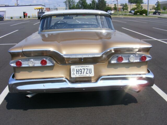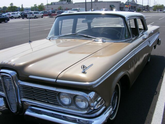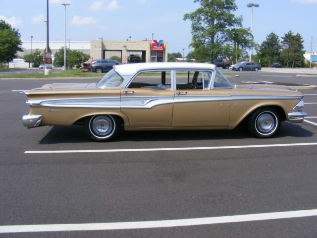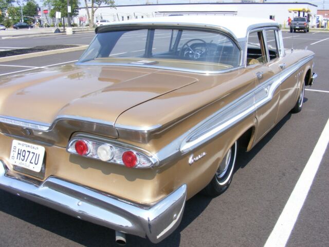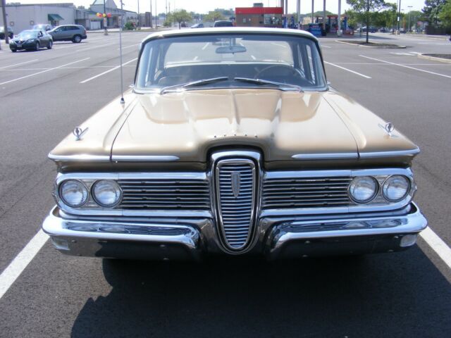 Very cool Edsel Corsair w/low original miles. Restored to a nice driver quality standard - rechromed bumpers, all trim polished & in good shape, correct single stage enamel in original colors. Especially nice interior - this is where a lot of "restorers" cut corners with generic-looking materials. The interior in this car has been faithfully restored to its rather unusual original appearance (yes, it's really supposed to look like that!) and is in great shape - no visible wear, no rips/tears/splits, and the dash pad has no cracks. Original motor runs great - 361 4-bbl. with 303 HP and 400 lb/ft. of torque. Nice little rumble from the dual exhausts. Well equipped with automatic trans, power steering, electric wipers. Radial tires in good shape. These cars are getting harder to come by, and if you want to turn heads you probably won't do better at this price level. Feel free to ask any and all questions, come look at it if you're close or send a third party inspector. If you're seriously interested, message me with a phone number & best time to call. I have clear Ohio title in hand, in my name so no worries there.Please note that this car is for sale "as is, where is" in the Cleveland OH area and there is no warranty of any kind. Buyer is responsible for any & all shipping arrangements, but I will do everything I can to help out your shipper - I'm retired so can be available just about any time for pickup 7 days a week. I have relisted this car at the minimum price I'll accept - there won't be any further markdowns or lower offers considered. I'm not selling it because i need the money - I actually need the garage space as I just bought another car. If it doesn't sell this time around it won't be relisted & I'll have to make alternative arrangements for storage. I'll expect a $500 (non-refundable) deposit through Paypal within 24 hours of the deal closing. The balance should be paid within 7 days. I'll take checks (including personal checks) for the balance with the understanding that it must clear before the car leaves. The car is stored in a safe, dry garage with a security system on a battery tender and will stay there, insured, until it leaves my premises. I'm flexible on a timeframe for pickup which we can discuss. I'm fair, honest & easy to deal with - that's what I would like in return. Thanks for your interest.