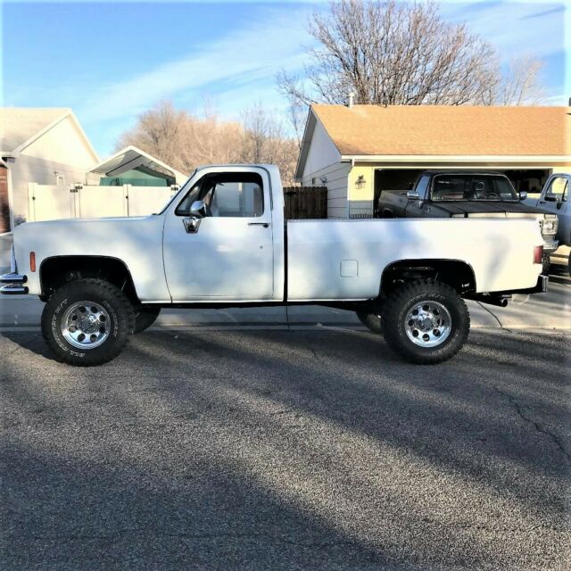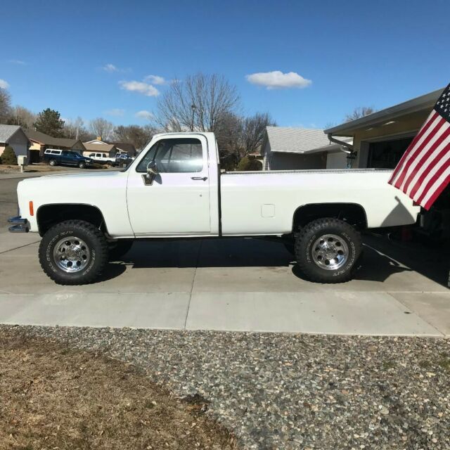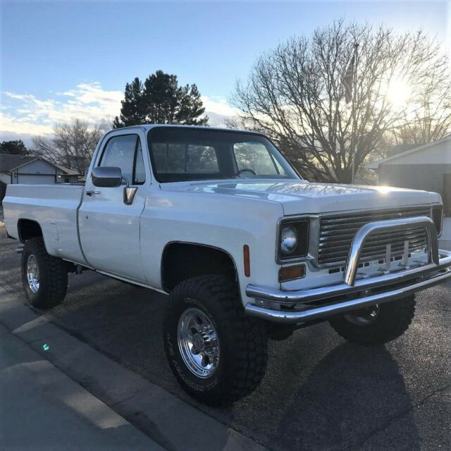 Chevrolet Other.1974 Chevy Scottsdale K20 4X4 Long bed Price-$28,000 1) Built BB/402/385HP Internally Balanced with RV Cam (29,000 Miles on Motor 60 PSI @ Cold Crank, Holds 55 PSI @ Warm Idle 60- 65 PSI @ 2,000-5,000 RPM'S A) Edelbrock Performance Intake B) Edelbrock 600/CFM Carb C) Stock GM BB Heavy Duty Exhaust Manifolds that have been Heat Coated D) New Heavy High Torque Starter, High Out Put Alternator, and Accel Distributor with HEI Ignition Supercoil E) Custom Chevy BB Valve Covers and Air Cleaner 2) Rebuilt TH400 3-Speed Auto Trans and 205 NP Transfer Case 3) 14 Bolt 3/4 Ton Rear 8 Lug Axel and 3.73 Ratio 4) 10 Bolt 8.5 Front 8 Lug Axel 5) 4" Comp Suspension lift with Pro Comp ES 9000 Shocks and Steering Stabilizer 6) Brand New 17" Pro Comp III Rims with 35x12.5/17 LT Ironman All Country M/T 7) 2 3/4" Exhaust from Manifolds, 3" from Dual Flow Masters back to 3 1/2" Welded Chrome Tips 8) Custom Heavy Duty Chrome Bumpers and Towing Hitch Bolted to Frame 9) Rugged Bedliner with 5th Wheel Brackets Installed 10) Custom Paint is White with Pearl and Clear Coated, Cab Corners, Bottom Rockers, and Bed. Absolutely a Zero Rust Truck 11) New Interior, Seat, Headliner, Instrument Panel, Lens, Gauges, Wood Panel Cover, Pioneer Stereo, Amp, Speakers, and Wiring 12) Frame and Undercarriage Have been Ground, Sprayed, and Coated 13) New Front Windshield and Rubber This Chevy 3/4-ton Big Block truck is a beast that has a lot of torque for pulling and runs down the Interstate at 75 MPR like the wind. Truck had front end alignment after Pro Comp lift kit, wheels, and tires were put on, so it rides extremely good. Very mechanically sound ZERO rust old school square body that runs, sounds, and looks amazing. Price is $28,000 FIRM. All shipping is buyer's cost. Contact number for showing and more information (970) 200 4670. Please no emails or text, CALL if interested.