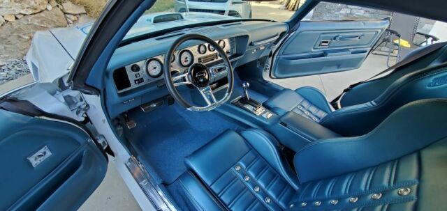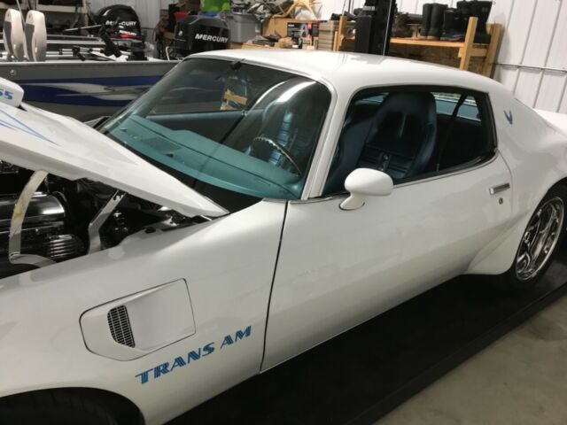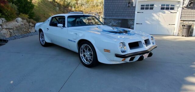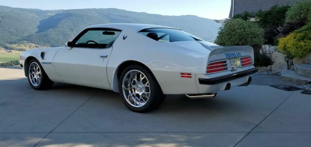 Pontiac Trans Am. 1974 Trans Am Pro Touring Resto Mod Full Rotisserie, With 525 miles, since completion, Beautiful Gloss White Paint.With All New Decals...Powerful 6.2LS Motor Dynoed At 430 HP At Rear Wheels,Connected to a 4L85 E Transmission, With A set Of Detroit Speed Headers,Massive 19"x11" Rear Wheels,18x10" Front Wheels With American Racing Rims ,With Nitro NT555 G2 Tires 305/35/19 rear 275/40/18 Front,6 Piston wilwood Front 4 Piston Rear,With Hydro Boost System,Detroit speed Front Clip With sub Frame Connectors connecting to A Detroit Speed 4 link system With A Ford Nine Inch Rear End With 3:70 Gears,Detriot Speed Rear Sway Bar.Under The Hood6.2 LS3430HP At The WheelsPolished ExhaustAluminium LS Radiator 2 FansVelocity Intake And Fuel Rails,104 mm,Throttle BodyEddie Motor Sports LS Serpintine KitBillet Specialties Valve CoversDetroit Speed Stainless Steel HeadersWilwood 6 Piston Front 4 Piston Rear,Wilwood Master CylinderUpgraded Brake Calipers To Red And New Crossed Drilled and Slotted Rotors...Hydro Boost SystemExteriorBeautiful Gloss White Paint19x11 Rear18x10 FrontNitro NT555 G2 TiresAmerican Racing Wheels VF518Fiber Glass Front Valance and Wheel Flares Molded to FendersFor A Cleaner look Without the welt Trim...Headlight KitLED Tail Light KitLED side Marker Lights,Signal LightsUnder Carriage Fully Detailed, Polished Exhaust System wth Magna Flow Mufflers,Stainless tipsDrivetrain4L85E TransmissionNew Torque Converter..2500- 2800 Stall...B&M Ratchet ShiterSuspensionDetroit Speed Powder Coated Front SubframeDetroit Speed Quadralink Rear SuspensionMoser 9 inch 3rd Member ,Truetrac Differential 31 Spline3:70 Gear RatioComplete Ford inch Axel With GM 5 on 4-3/4 Bolt patternQuadra- Link HousingMini Tubed KitNarrowed stainless Steel Fuel tankSubframe ConnectorsInteriorAll New Beautiful Blue Interior,With New TMI Seats ,Door Panels, Rear Panels, CarpetHeadliner, Sail Panel ,Rear ConsoleVintage Air Conditioning UnitSony Head Unit With MB Quartz Speakers And Subwoofers And 4 Channel AmpAll New American Auto Wiring SystemNew ...New Vintage USA Detriot Gauges .possible trade and cash on a muscle car. Located 3 hours from the us border. Will assist with shipping