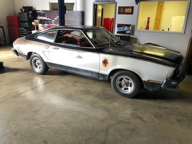1976 Mustang II - Stallion Edition - Original Paint. This Mustang Stallion is a one year only edition (1976). This Mustang is a rust free, Arizona car. The sun has taken it's toll on the exterior silver paint on the rear of the vehicle and also the red interior. The rest of the paint is in decent shape, but should be repainted. The engine is a 2.8L V6 with an automatic transmission. The vehicle has a new fuel tank and fuel pump. It does start and run, but I have only driven it in the parking lot. It is not road worthy to be driven, and the brake pedal is very low. The interior is very sun faded and worn. I have door panels, interior quarter panels, sun visors, taillights and hatchback surround panels all in red. You will need carpet, seat upholstery, dash pad etc. The body is very solid, no rust other than the surface rust on the back top of the vehicle. There is a dent at the bottom of the passenger fender and the front plastic valence is cracked. You can see the underside of the vehicle is in very nice shape. This is a nice rust free body to start with. The only reason I am selling is that I just bought a completely restored Stallion and that will save me the time to have to restore this one.