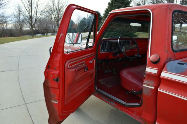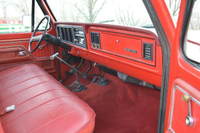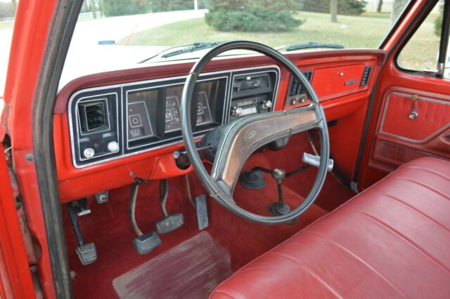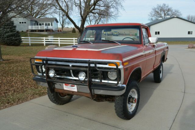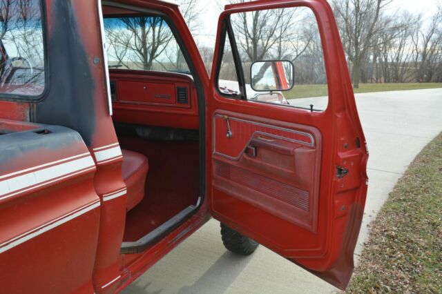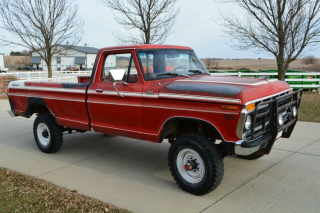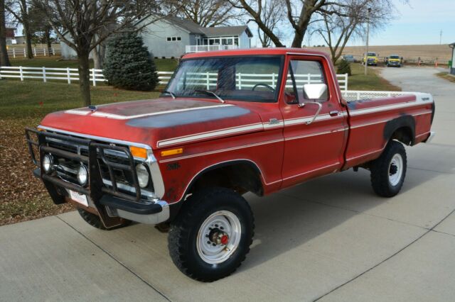Up for sale is a 1977 Ford F250 Custom Cab Highboy 4x4 with Explorer package, it is a true factory red Highboy built January of 1977 (Highboys built 1967 through June of 1977). This Highboy was owned by a farmer for many years in Nebraska, it is powered by a 351m v8 engine with Holley 4 barrel carb, 4 speed is factory and has granny low first.Original Highboy factory equipment includes the following:-Divorced transfer case. (Transfer case is separate from transmission)-Front frame crossmember below bumper-Gas tank behind seat-Highboy specific power steering assembly-Frame 4 inches narrower than normal truckThis specific truck runs and drives, the 4 wheel drive works (lockout hubs), cab mounts, cab corners, floor pans are all solid. It appears to be all complete and mostly original.The bad:-Engine runs down the road but has a light knock when at temperature (rebuild recommended)-Power steering leaks-Hood has rust on underside-box sides have bondo where it's painted black above wheels (rest of truck is mostly rust and bondo free)-various dents and dings and minor rust, see picturesOverall a solid, restorable truck that is hard to find in this condition and the combination of Highboy, 4 speed, red, and Explorer package. Clean Nebraska title. Marti Report to follow.Please ask any questions you may have, do not assume anything. This truck is 45 years old and needs work or would be a great candidate for restoration.Located at Mike's Classic Cars in Elkhorn, Nebraska. Call us at 402-289-9310, ask for Alec or Mike