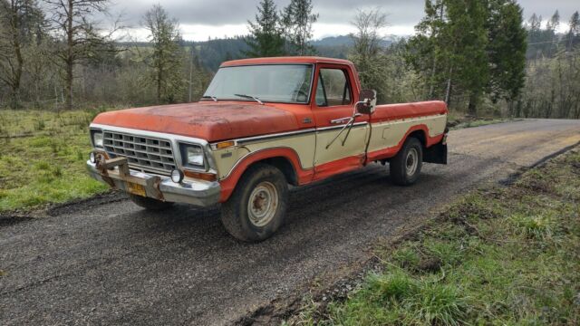 1979 Ford F250 Ranger400 v8, C6 auto trans, 2 wheel drive, power steering, power brakes, non A/C. Runs and drives but does need work. Clean Oregon title in hand. OD reads 30K miles, do not know how many times it has turned over.The engine runs good, could probably use a tune up and the carb rebuilt, it leaks some fuel and runs a little rich some times. Previous owner stated that it had a new short block replaced at one point but I have no paperwork on that. Does not have any blow by. Transmission shifts good.Truck runs and drives down the road without issue, steering is good and the brakes are good. This is a project/parts truck.The body is beat up as you can see in the photos but there isn't any rust except the rear passenger side of the bed. It needs some electrical work, has some extra wires running around, lights need some work, wipers and heater fan don't work. I have not looked into the issues. There are probably other minor things that I do not know of. More photos/videos can be found here: https://drive.google.com/drive/folders/13GtuftG-4hbnbzqq6236-apq83J4LZOe?usp=sharing A $500 non refundable deposit is due within 24 hrs of purchaseFull payment is due within 7 days after buyingTruck must be picked up within 20 days of buying or a $50 per day storage fee will be accrued.The Truck is Located in Sweet Home Oregon, 97386