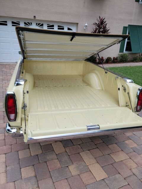 Ground up high quality restoration on a COMPLETELY RUST FREE CAR. Everywhere and anywhere you look is like new. Definitely a rare, one of a kind classic. Exterior: The body is absolutely mint and laser straight, body gaps are precise, and all trim fits perfectly. Doors open and close nice and smoothly even with the windows up. The grill, marker lights, side moldings are mint. Trim on top of bed is straight and polished. Bed is mint and painted a gloss finish. Entire body has a beautiful smooth finished paint. Door jambs, hardware, and latches are clean and operate fine. Glass and weatherstrips are excellent. Fitted with redline tires on chrome GT style wheels. Interior: From headliner to carpet, the entire interior is like new and proper. The dash area is mint- pad has no cracks, gauges are clean, knobs and levers sparkle, and steering wheel is solid with no cracks. Headliner, visors, upholstery, seat belts, door panels, and carpet are all excellent. Under the dash are some upgraded features such as an FM converter, an 8-track, and a tachometer. Behind the seat is a 5th matching, brand new redline tire for a spare. The original jack looks new and is properly mounted. Engine compartment: Neat, orderly, and detailed. The firewall and bottom side of the hood is painted a smooth glossy yellow to match the exterior. Other painted areas are a smooth satin black. The motor is the original 302. It's been rebuilt and upgraded with an aluminum intake, Edelbrock 4-barrel carb, MSD ignition, and dressed up with some Ranchero finned aluminum valve covers. Most components under the hood are new and many still have the labels on them such as the alternator, master cylinder, and steering pump. Under carriage: Some of the cleanest original metal you'll see. The floors have spotless seams and factory spot welds are plainly visible. The metal is smooth as the day it was new with a satin black finish. Bottoms of rockers and quarter panels are spotless. Upfront the steering and suspension is all rebuilt. Bottom of motor looks new. Transmission is a rebuilt Hughes cruise-o-matic with aluminum pan. Has custom dual exhaust with crossover pipe and Flowmaster mufflers. Everything looks proper - neatly run brake lines and disc brakes, fuel lines, parking brake cables, and painted gas tank. There is also lots of extras included - 2nd set of keys, deluxe framed Marti report, original manuals, and literature. If you love Rancheros, then this is a must see, must have, beautifully restored and maintained classic! Happy bidding and Good Luck!