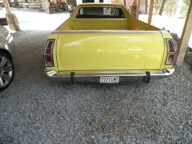 Beautiful ford Ranchero GT in excellent condition in and out. This vehicle has always lived in California and received care on a constant basis. The motor is a 351 Cleveland and the heads have been rebuilt to receive unleaded gas. It runs as it should. The wheels are custom and are flawless. The tires have been replaced in the last 300 miles so are basically new.The paint is excellent and an eye grabber. I have lowered the vehicle 3" all the way around for a great look. All the badging has been removed and the interior is upgraded to include an all leather handsewn dash along with all white gauges (glows red at night) ,Grant steering wheel, custom upholstery, wood trim on the dash and 7 speakers. The air conditioning works as it should along with power steering and brakes. The brakes have been replaced.The exhaust system is new from the manifolds all the way back(including cats) with twin stainless steel exhaust tips with resonators. Radiator replaced last year with griffin all aluminum unit. Drive this vehicle anywhere as is. It is California smog legal.Please call 530-622-1361 with any questions or concerns(California time). I am a 76 year old collector that wishes to downsize and have enjoyed the hobby but the time has come