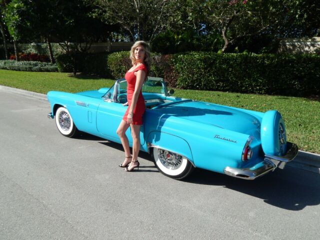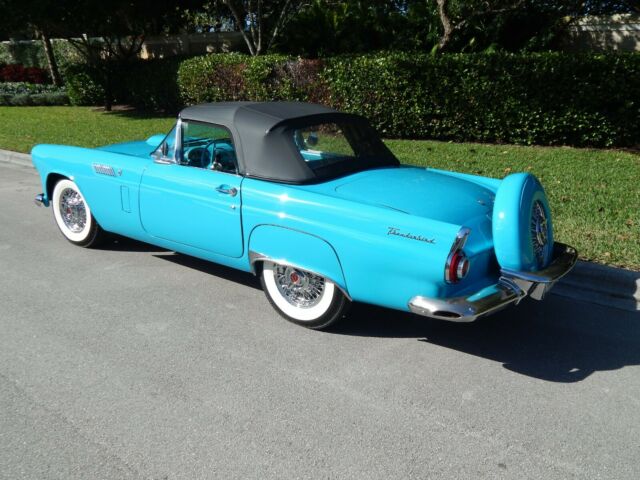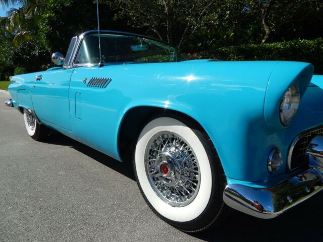 REPRESENTING THIS TERRIFIC BABY BIRD. NO EXPENSE SPARED RESTORATION FINISHEDIN 2013. THIS IS THE LAST CAR FROM A PRIVATE COLLECTION TO BE SOLD TO SETTLE AN ESTATE. RUNS, DRIVES, STEERS & STOPS LIKE 1956. ABSOLUTELY THE BEST RUNNING, MOST DEPENDABLE '56 T-BIRD ON THE MARKET. LONG TIME COLLECTOR HAS PASSED AWAY AND WENEED TO CLOSE THE BOOKS. THIS CAR HAS HAD EXTENSIVE MAINTENANCE THROUGHOUT HIS OWNERSHIP. NEVER RUSTED BODY AND FLOORBOARDS, CHASSIS IS CLEAN, NOT OVERDONE.PAINT HAS CORRECT DEPTH, CHROME AND STAINLESS HAS BEEN RE-DONE, GLASS IS CLEAR,ENGINE COMPARTMENT NICELY DETAILED, INTERIOR CLEAN & COMFORTABLE, RECENT CARPETS & CUSHIONS REPLACED, POWER WINDOWS & SEAT WORK PROPERLY. NEW CLASSICAUTO SOUND SYSTEM.WORK COMPLETED IN RECENT YEARS - COKER CLASSIC RADIAL TIRES, BATTERY, CARBURETOR. OVERHAULED, TRANSMISSION OVERHAULED, TUNED UP & DISTRIBUTOR BLUEPRINTED AND CONVERTED TO ELECTRONIC IGNITION. NEW WATER PUMP, THERMOSTAT, ALUMINUM RADIATOR, NEW MECHANICAL & ELECTRIC FUEL PUMPS WITH RON FRANCIS RELAY SYSTEM.HARDTOP IS NOT RESTORED. NEW SEALS WHERE IT MEETS THE BODY.FULLY SERVICED & READY TO GO ! WE HAVE RECORDS & RECEIPTS TO BACK UP ALL CLAIMS.PRICED AT FAIR MARKET VALUE - THESE MODELS APPRECIATE MODERATELY . AVAILABLE FOR INSPECTION DAYTIME HOURS BY APPOINTMENT. RESIDE IN GATED COMMUNITY IN SOUTH PALM BEACH COUNTY FLORIDA. CLICK ON LINK FOR ANOTHER SET OF PICTURESCALL JOE DAYTON 561-789-2980 7AM TO 7PM - INCLUDING SUNDAYS & HOLIDAYS FOR MORE PHOTOS CLICK HERE