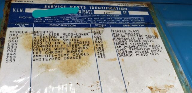 | Number of Cylinders: | 8 | Make: | Chevrolet |