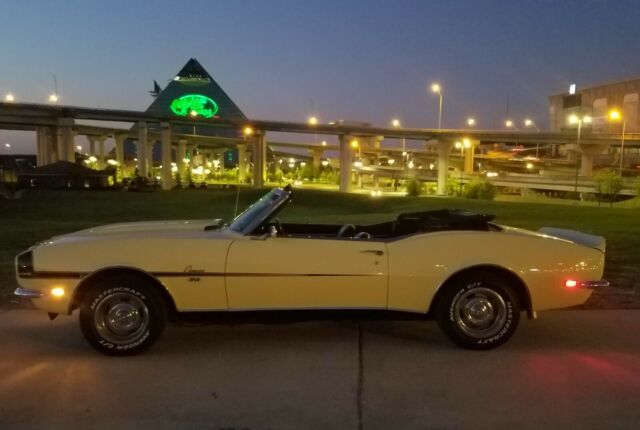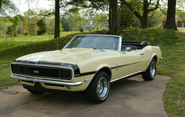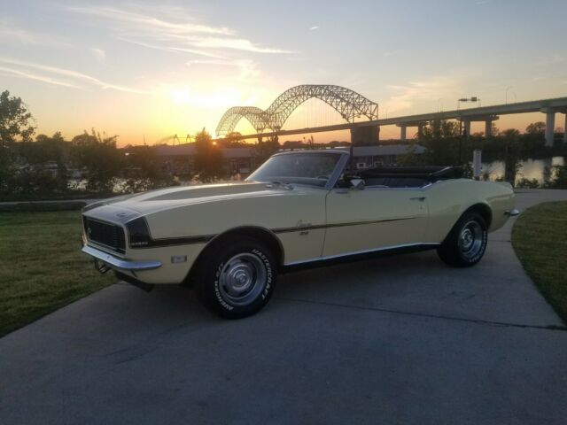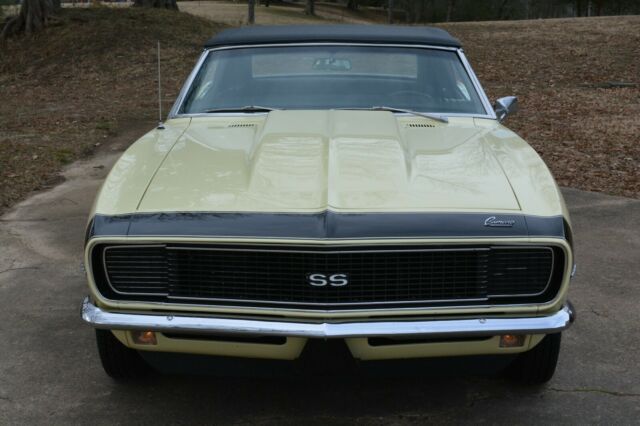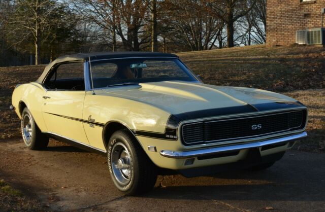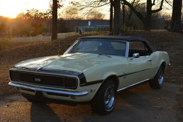 Own a part of 1st generation Camaro history, This is the only RPO L89 1968 Chevrolet Camaro RS/SS 396ci/375hp convertible known to exist with the rallysport option, 1 of 1 Documented with it's original protecto plate/owner history and NCRS report, Factory Protecto plate pictured note's "MT" engine code which designates 396ci/375hp w/aluminum head option, I have been in contact with the original owner who still lives in South Carolina where this car was bought new, He purchased this car brandnew as soon as he returned from Vietnam on September 1st of 1968, He took delivery on September 3rd 1968 which is documented on the protecto plate, This was a special ordered car from Palmetto Chevrolet Company in Conway South Carolina and the gentleman that originally ordered it did not complete the deal therefore it sat around on the showroom floor for approx. 5 months before being bought, The original color combination is ash gold with black stripes, black rear body panel, black interior and a black convertible top, It had the steel wheels with the dog dish type hubcaps, The 68 Camaro was the first Camaro to receive aluminum heads from the factory with only 272 68 Camaro L89 cars built and from my understanding while GM records are not exact it is estimated that only 6 L89 Camaro convertible's were ever produced in 1968, Of the six only 2 documented examples (non rally sport optioned) are known to exist, This is the 3rd and only one known equipped with the rally sport option (1 of 1) that was stored away for many years basically unknown, It is now butternut yellow w/black stripes/black rear body panel, black convertible top and has black and white houndstooth seat covers, I remember this car over 40 years ago sitting inside on the showroom floor of a small town Chevrolet dealership here in Tennessee, It wasn't for sale just solely being used to draw attention to the dealership, Current engine is a professionally built 467ci bigblock dynoed @ 620hp, Coated big tube hooker headers w/complete 3" exhaust, Tremec 5 speed transmission, 12 bolt posi rearend with 3:73 gears, power steering, powerdisc front brakes, console w/gauges, floor shift, manual convertible top, Runs and drives great, All lights/hideaway headlights work, Solid southern car, Never subjected to salty roads or climates, All original floors, rockerpanels, trunk, quarter panels, etc.. Garage kept/pampered, Rare/1 time opportunity, You will not find another 1968 L89 convertible that was ordered with the rally sport option/hideaway headlights, Must see to appreciate, Sold in as-is condition with a clean clear title and all of the documents pictured, Also included - 396ci/375hp block 3935440, with brandnew 11.5.1 compression pistons, GM L89 Aluminum heads 3919842, L89 GM Aluminum intake 3885069, New Holley 4053 GM #3923289 780cfm 4bbl carburetor, New GM Alternator 1100814 w/deep groove pulley.