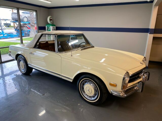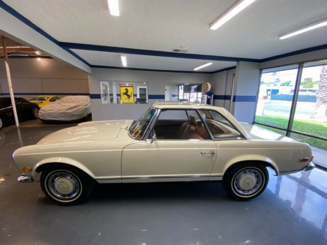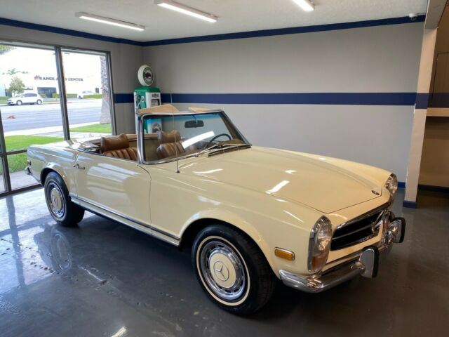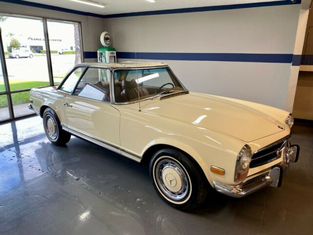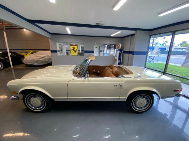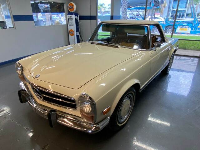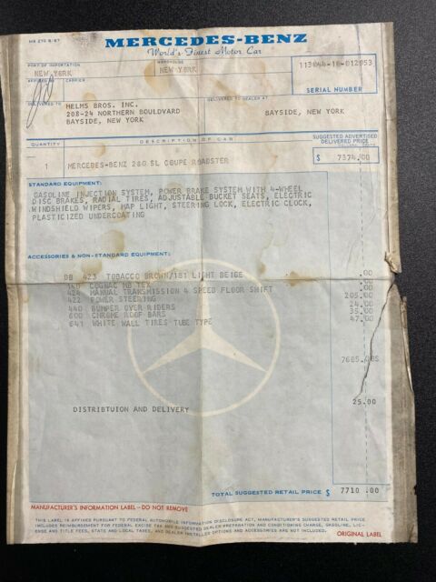 Gallery Junction is Pleased to offer this 1970 Mercedes-Benz 280SL Roadster. This stunning example was built September of 1969 and sold new at Helms Bros. Mercedes-Benz. Originally finished in two tone 423 Tobacco Brown/181 Light Beige with a Cognac MB Tex Interior and Beige Soft Top and Light Beige Hardtop. The original books and window sticker have remained with the car. The original window sticker which is pictured indicates the car came with the following options:424 4 Speed Manual Transmission422 Power Steering440 Bumper Over Riders600 Chrome Roof Bars641 White Wall TiresIt made its way a few years later to the West Coast and spent the majority of its days in Newport Beach, CA. The current owner purchased the car for his wife to drive and with that in mind, set out to restore the car to every day driver standards. He had the engine rebuilt, transmission and clutch and all mechanical items to make it safe and reliable. The car comes with a binder of receipts and records for the work performed. In addition the chrome and stainless were re-done as well as the interior in addition to other cosmetic and mechanical items. We have walkaround videos and driving videos of the car as well. It truly runs and drives wonderfully.Exporters Welcomed. We offer Facetime-Video Walk Arounds.For 50+ pictures, check out www.GalleryJunction.com or Text us for more pictures of any specific details you need. We like to be 100% transparent with all our happy customers all around the world.salesgalleryjunction@gmail.comCall or Text or WhatsApp 714-831-1226
