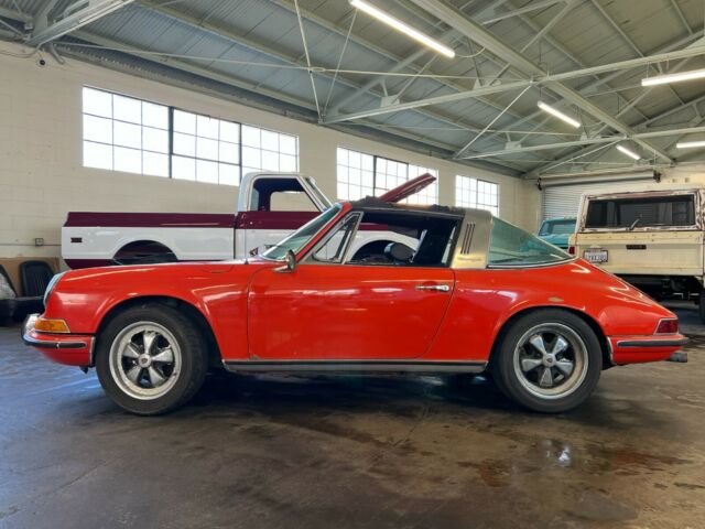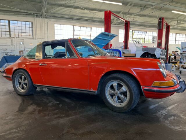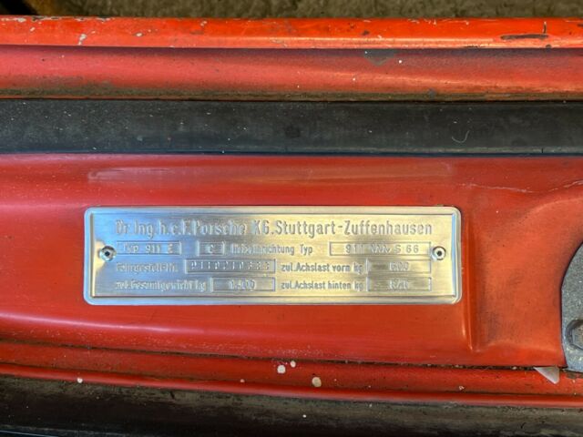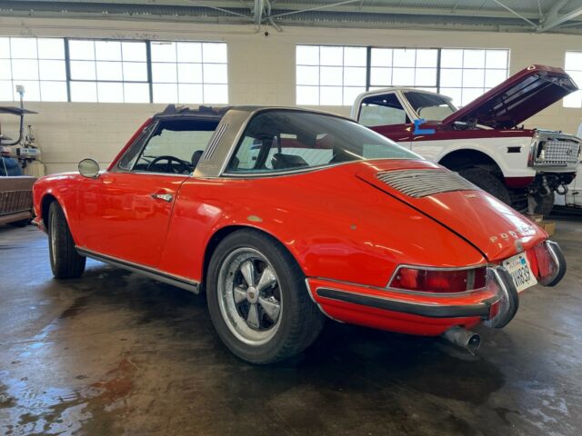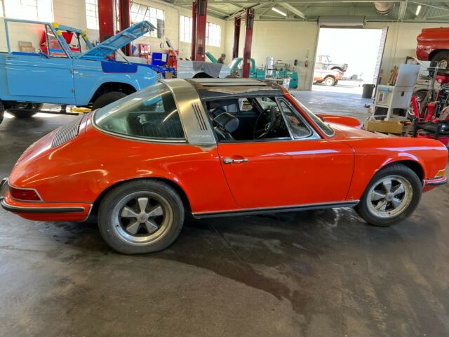 VERY RARE 1970 PORSCHE 911E - FACTORY TANGERINE ON BLACK!FRESH OUT OF 30 YEAR GARAGE STORAGENUMBERS MATCHING CALIFORNIA CAR(SEE ADDITIONAL PHOTOS BELOW)CONTACT US FOR AFFORDABLE SHIPPING QUOTE - JONAS 310 600 1182INTERNATIONAL BUYERS WELCOME!We just discovered this beautiful 1970 Porsche 911E Targa. We could not believe our eyes when the garage doors opened! It was found here in Southern California in the owner's garage where it has sat for nearly 30 years. The owner had parked it, removed the windshield and dashboard (new glass and trim installed, owner could not find dashboard) with the intentions of having the car painted and restored, but never got to it. It was literally buried in 30 years worth of items. This numbers matching, very original 911E is the perfect candidate for a nut and bolt restoration. You can't ask for a better looking, more desirable color combination! The car is currently not running. We have not attempted to start it, but it does turn over freely. The owner stated it ran great before he had stored the car, but he could not locate the service records. The car has a clean, clear California title and current registration. HIGHLIGHTS:Rare Early 911E TargaFactory Tangerine With BlackCalifornia CarNumber Matching EngineVery Original & Complete PRODUCTION DOCUMENTATION: VIN: 9110210333 Model Type: 911424 1970 911E Targa with 5 speed manual transmission Production #: 1101569 Invoice Date: 1969 12 Engine Number: 6200924 Engine Type: 911/01 911E MFI 2195cc 155HP@6500rpm 191ft-lb@4500rpm Gearbox Number: not recorded in production record Gearbox Type: 911/01 5-speed manual with gearset A GA O V ZA and R&P 7:31 Country Code: C02 Equipment for USA except California Color: 2310 Tangerine with black Targa top Interior Trim: 11 Interior panels & seats Leatherette Black, Seat inlay basketweave, Carpet Black Options: M427 Stainless steel muffler skirt M453 Blaupunkt Frankfurt (US band) with retractable antenna left, loudspeaker, noise suppression Standard Equipment Radial tires 4-wheel ventilated disc brakes Hydropneumatic front suspension Electrically heated rear window Fresh air heating & ventilation 3-speed windshield wipers High capacity discharge ignition 911S instrumentation Leather covered steering wheel Please email, call or text with any questions or to obtain a shipping quote. Jonas 310-600-1182