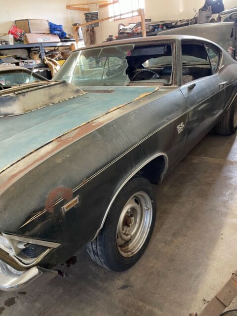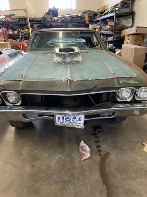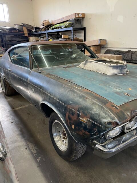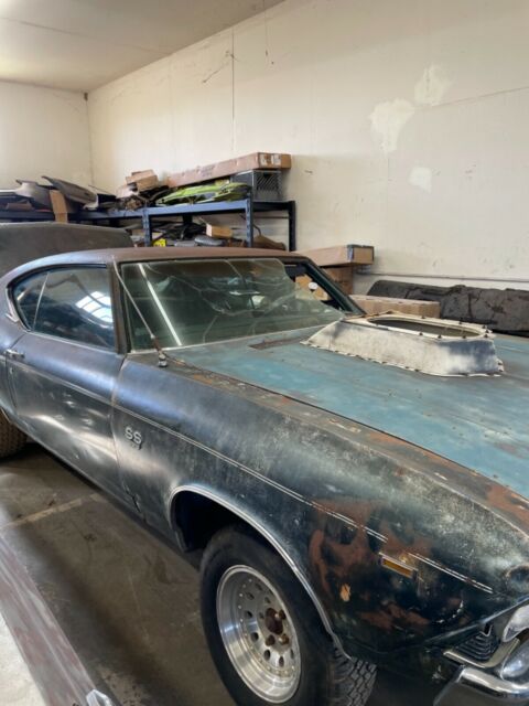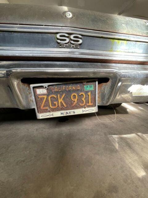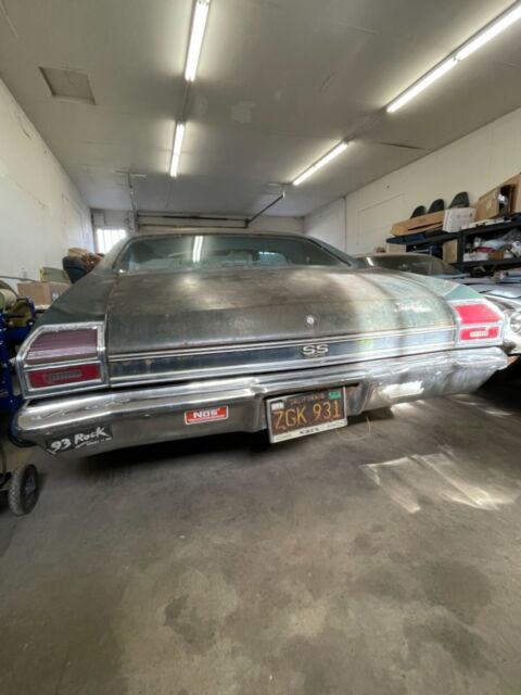 1969 chevy chevelle SS 396 original California car built in the Fremont plant. Been sitting off the road since 1984 for 38 straight years! Has 396 and th400 that is not numbers matching that is locked up from sitting. Car is very solid has small spot of rust through on drivers side floorboard and trunk has crusty surface rust but only a few spots coming through would not need to be replaced. Absolutely no rust in the quarter panels rockers or doors very straight car overall with the original Fathom Green paint never been repainted ever! Vinyl top was removed over 30 years ago so roof is in great condition. No rust around front window, only one small spot in lower left corner of back window. Has factory 12 bolt rearend and power disc brakes with power steering and factory equipped with A/C. Original bench seat column shift TH400 car. Car is complete except for driveshaft. There is no title will be sold with bill of sale only. Call Dean at (530)953-6092 with any questions you have I will be glad to answer them.