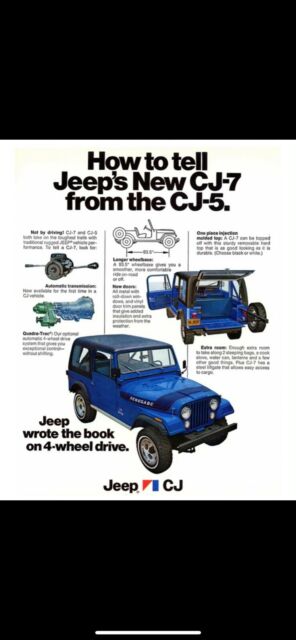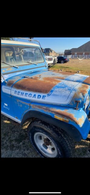 @import url(https://fonts.googleapis.com/css?family=Roboto); About this vehicle This 1976 Jeep CJ-7 is a project vehicle. The owner has had it for 1 year. The vehicle needs work and is not regularly driven. Seller's Notes Located in Keller, Texas, 76248. Call 817-797-7985 for more information. Vehicle Details ⢠Rare 1976 Jeep CJ-7 w/ Renegade and Levi Edition Packages. ⢠(First Year of CJ-7) ⢠Special Order 304 V8 Automatic Transmission Option w/ 4x4 Wheel Drive ⢠Rare Paint Code 6R (Brilliant Blue) ⢠Rare Factory Tachometer ⢠OEM Factory Mag Wheels only available on Levi Edition ⢠Original Factory White Hardtop in good condition ⢠Spare tire holder at rear ⢠Includes âBest Top Brandâ Bikini Top (Levi Edition Blue Denim Vinyl Top) ⢠Original Levi interior (Dash pad, Door Panels, Sun Visors) ⢠Special Order Automatic ⢠Steel doors with roll up windows ⢠Rally steering wheel ⢠Includes new fender flares in box ⢠Vintage KC Spotlights and Fog lights Special order 1976 Jeep Cj-7 with Renegade and Levi Edition Package. Rare Paint Code 6R (Brilliant Blue) w/ White Renegade decals. Also ordered With 304 V8 Automatic Transmission option w/ 4x4 Wheel Drive. This vehicle is a roller no Engine or Transmission. Factory Tachometer. Jeep has great patina and is pretty complete for full restoration or Preservation class. Minimal surface rust throughout. Some rust on lower portion of windshield frame and lower portion of passenger fender. Floors have minimal surface rust only as well. Will be difficult to find another fully loaded CJ-7 in this condition and this many options. Vehicle will be sold as is with Texas Bill of Sale and no Title. Thanks for bidding! Exterior ⢠Rare 1976 Jeep CJ-7 w/ Renegade and Levi Edition Packages. ⢠(First Year of CJ-7) ⢠Special Order 304 V8 Automatic Transmission Option w/ 4x4 Wheel Drive ⢠Rare Paint Code 6R (Brilliant Blue) ⢠Rare Factory Tachometer ⢠OEM Factory Mag Wheels only available on Levi Edition ⢠Original Factory White Hardtop in good condition ⢠Spare tire holder at rear ⢠Includes âBest Top Brandâ Bikini Top (Levi Edition Blue Denim Vinyl Top) ⢠Original Levi interior (Dash pad, Door Panels, Sun Visors) ⢠Special Order Automatic ⢠Steel doors with roll up windows ⢠Rally steering wheel ⢠Includes new fender flares in box ⢠Vintage KC Spotlights and Fog lights ⢠Does come with transfer case Special order 1976 Jeep Cj-7 with Renegade and Levi Edition Package. Rare Paint Code 6R (Brilliant Blue) w/ White Renegade decals. Also ordered With 304 V8 Automatic Transmission option w/ 4x4 Wheel Drive. This vehicle is a roller no Engine or Transmission. Factory Tachometer. Jeep has great patina and is pretty complete for full restoration or Preservation class. Minimal surface rust throughout. Some rust on lower portion of windshield frame and lower portion of passenger fender. Floors have minimal surface rust only as well. Will be difficult to find another fully loaded CJ-7 in this condition and this many options. Vehicle will be sold as is with Texas Bill of Sale and no Title. Thanks for bidding! Interior Download the eBay Motors app