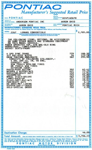 @import url(https://fonts.googleapis.com/css?family=Roboto); Vehicle Details For your viewing pleasure a 1964 Pontiac GTO convertible sold in Akron Ohio from Anderson Pontiac which later became Knafel Pontiac. Home of the "Tin Indians". They sponsored forty Pontiacs that won over a thousand races. This beauty is one of only ten 1964 factory 4 speed, tripower convertibles on a GTOAA registry with those options and model. This is a low mileage older restoration. Hagerty valuation tool has a convertible concourse car with those options listed at $182K. This unit is between a 2 and 3, valued around 100K. With a little work and freshen up the resto could be worth much more. I discovered an interesting detail about the production date the vehicle was built. The build date on the firewall data plate is first week in March. The cool thing was after removing the valve covers I saw the heads were stamped B284 and B294. Being a leap year one of the heads was stamped B294 which equates to 2/29/64. Check out the T3 headlights. I installed date coded Packard spark plug wires. More documentation and photos available. I'm in NC. This car looks good on Franklin St in Chapel Hill home of the Carolina tarheels. You can reach me, Rick Perry (not the governor of Texas) @ 336-854-7777. Please call before 9:00 EST. Images Download the eBay Motors app