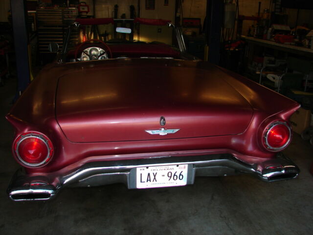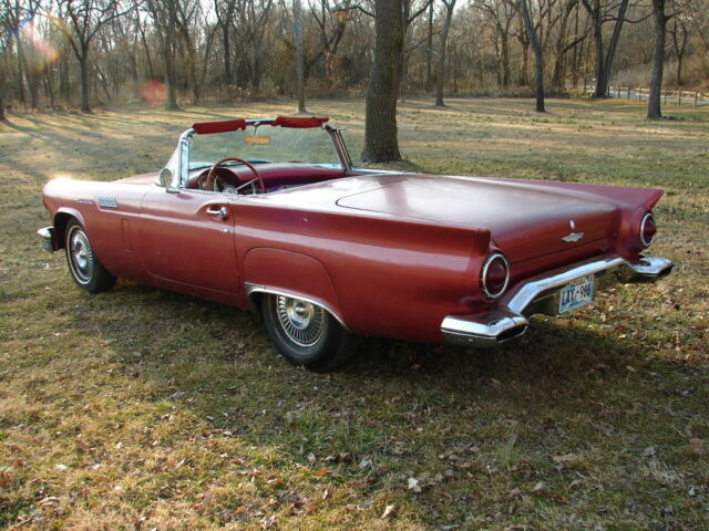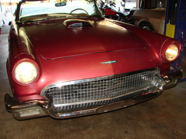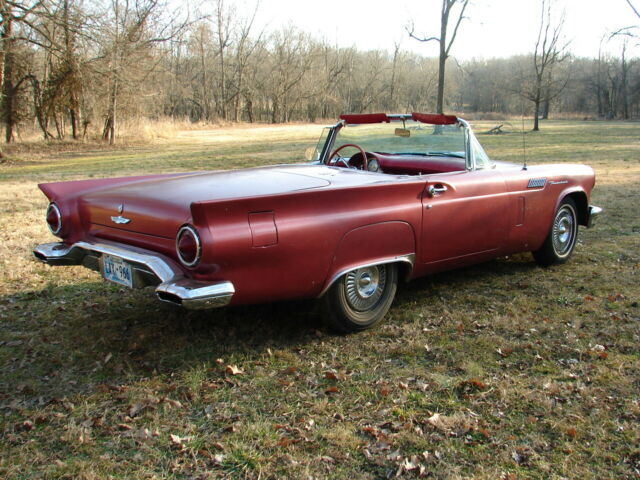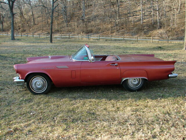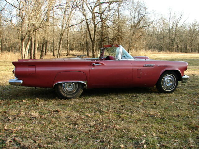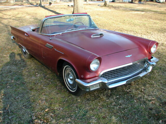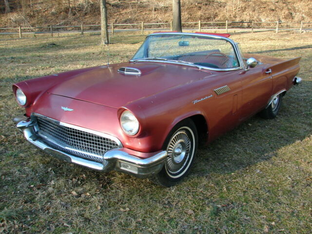 1957 ford thunderbird survivor312 V8 runs great and automatic trans shifts smooth.New brakes all around. I just put on a new master cylinder, and it stops good. It has sat for years, and I just brought it back to life again. Longtime owner that had it before me took really great care of it. It is an 85,000-mile survivor with ZERO rust! Never had any rust and has no patch panels. Undercoating is original and is hard as a rock (not fresh), I haven't touched it. It has been repainted one time years ago in the lacquer color it is now. Original color is Flame red with a Colonial white top. I think it is very cool as it is and would drive it as a survivor.It has a hard top only, never came with a soft top. Yes, porthole delete! GOOGLE IT! 55's had no porthole, in '56 it was an option and in '57 portholes were standard, but porthole delete was an option.The back glass is out of the top because the previous owner had planned on repainting it. You will need to reinstall it with a new seal.It has a rare power seat. The things not working at this time are the clock, power seat and radio (may need some fuses). Lights, wipers, heater blower, amp gauge, fuel gauge, tach and speedometer and O.D.O. all work.Will need new tires if you're going to start driving it around. Will load on any transport. Has new battery.Call with any questions, thanks Mike 479 228 4304. DO NOT hit the "buy it now" without calling me first, thanks.