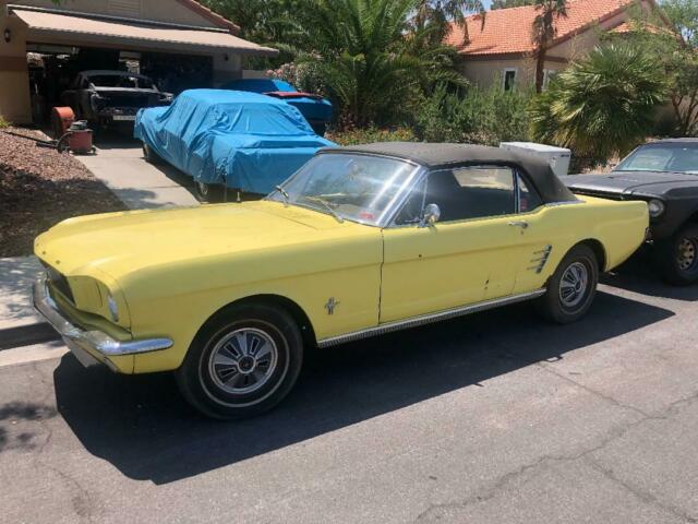 This is a numbers matching 289 2 barrel C code automatic transmission 1966 Ford Mustang Convertible that runs and drives and has brakes but needs work to be drive-able as is. Cosmetically this car would be a good driver and with a little mechanical work and a floor patch on front floor it would be a safe driver.This car was originally Candy Apple Red with Red interior but as you can see it was painted yellow and the interior switched to Black.The Black top is in good condition and the seats are nice too! I do have a new Black carpet and Black door panels and arm rest kit and tail lights and bezels as well as new gas cap and bumpers that I'll include if the asking price is paid for the car.I have a clean title in my name that matches the fender apron vins. The door tag is missing but you can tell what the car was by the colors on the floors etc,This is an easy easy restoration for even a beginner! Or do a little bit of work to it and put it together and have a fun Yellow convertible just in time for summer cruising!It does have a few rust issues but nothing major and all structural areas are good!I'm asking a fair price of $16,500 for this easy project . Like I said, I'll include the above mentioned new parts at the asking price.I'm adding the make offer option but PLEASE REMEMBER the new parts are not included at a lesser price unless an agreement has been made in writing with the offer when submitted.Car is SOLD AS IS WHERE IS. NO WARRANTIES EXPRESSED OR IMPLIED BY SELLER. No refunds given.Please call or text 763-291-0343m if you have any questions.Car is located in NW Las Vegas NV 89129. Buyer is responsible for all shipping arrangements. I do have a great shipping broker that I can share with the buyer if wanted. No paypal accepted. Immediate deposit of $1,000 due with Ebay pay system. Balance due in full within 3 days of auctions end. Payment by wire transfer of cash in person only! Thanks for looking ay my listing. Have a Great Day and Stay Well! :-)