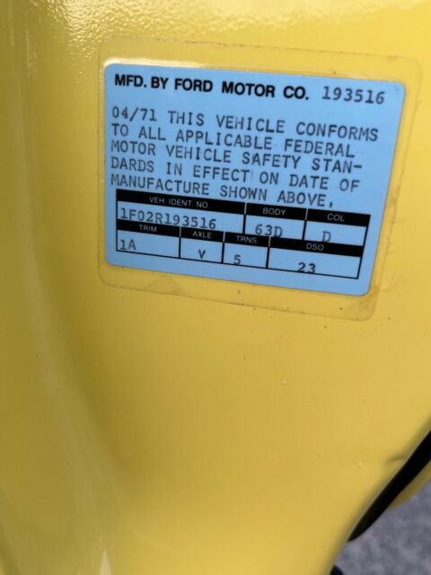 | Year: | 1971 | VIN (Vehicle Identification Number): | 1F02R193516 |