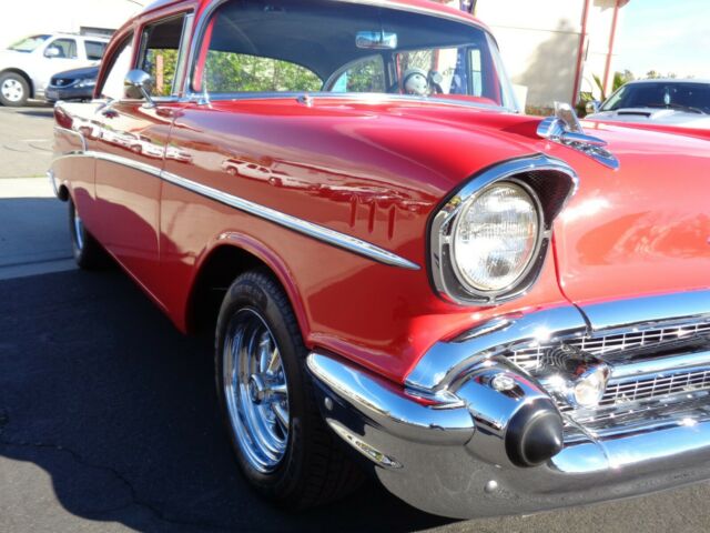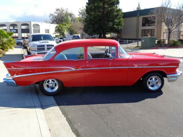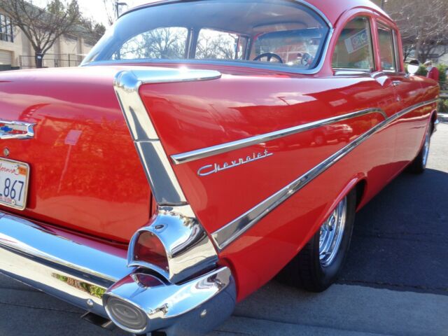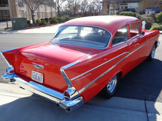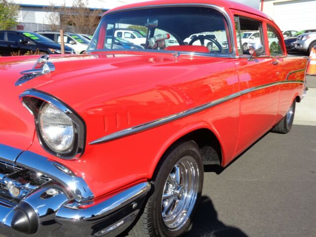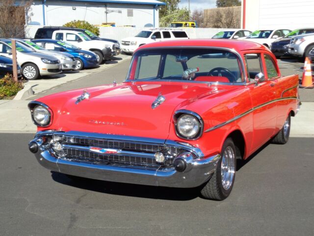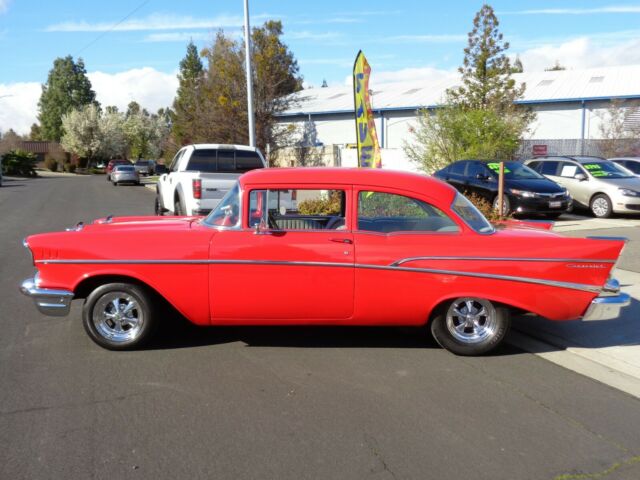 1957 Chevy 210 Post Frame off restoration completed in 2004 with only 9007 Miles on car since All Receipts/Paperwork come with carProfessionally built 454 Big Block bored .30 over, Dyno at 598 HP, Edelbrock Aluminum Heads, Crane Roller Cam, Muldoon Gear Drive, Edelbrock HPC Coated intake with Holley 4 Barrel Carb. HPC Coated Headers, Custom 3" Flowmaster exhaust system, MSD Distributor and ignition system with MSD 6AL Controller, K & N Air Cleaner. Be Cool Polished Aluminum Radiator with polished overflow and braided lines. Electric fans with thermostat, electric fuel pump. Billet Aluminum Pulleys, polished aluminum water pump, Billet aluminum valve covers, powder coated aprons, chrome master cylinder with booster. Chrome alternator, cool flex hoses, chromed hood hinges, braid fuel lines, everything is polished and detailed.Muncie M21 Rock Cruser 4 speed with richmond posi rear end 3:73 Gears. 11" Ram Clutch, new flywheel, hurst comp pro linkage. Lakewood Scatter shield/Bell Housing and Trans loop. Lakewood Traction Bars. Front Disc Brakes. Interior all redone with autometer Pro Comp Speedometer with under dash SW gauges. Sport Comp Tac with light shift and Rev Limiter, MSD Spark Controller. Grant steering wheel with tilt. Tinted Glass.Undercarriage painted/powder coated and looks as good as the body. All Chrome Redone and looks amazing, Body is painted Viper Red. Has a couple small blemishes but overall looks amazing. All new wiring, cragar wheels, carpeted trunk with Bitchin battery box and so much more. This car starts right up, it is loud and draws attention wherever it goes. It was meant to be driven so I would not hesitate driving it anywhere. No heat or A/C. But it would be that hard to add if desired. Clean California title in hand. We are located in Northern California and can assist with shipping if needed. Please feel free to call me with any questions at (707) 999-8429 All Vehicles are sold AS IS and all California Buyers are subject to sales tax and registration costs.