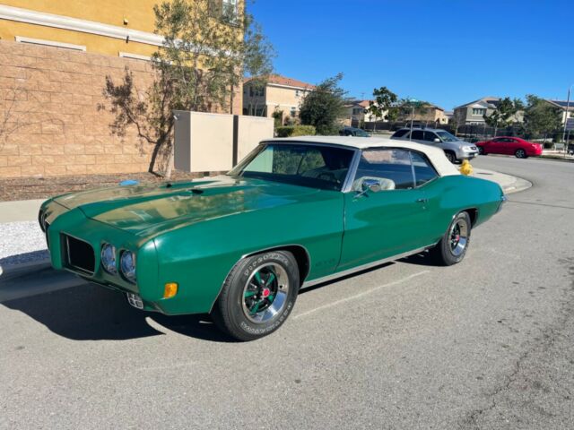 Super low reserve!!1970 Pontiac GTO 4 Speed Convertible 400/402 Big Block Numbers Matching. Vin 242670. Meaning Real GTO Convertible Beautiful Color combo Green over ivory interior Bucket seats 4-speedPower top power steering power Disc brakesFully restored Ground up nut and bolt roughly 8 years ago. Allot of brand new parts included fresh paint. Factory color was gold now Irish green Beautiful paint job high-quality glass out done professionally. No dents no cracks no paint chips. No Waves in paint. Motor Sounds Good. Demon carburetor and comes with the original carburetor. Real GTO convertible with build sheet. 100% Rust free. Everything works. Trunk is nice all the body lines are nice. Came with factory AC but previous owner removed the compressor. Motor was rebuilt when car was restored roughly 8 years ago Transmission shifts perfectly. clutch is Smooth All Brand new suspension brand new exhaust. Brand new tires. Brand new wheels. Brand new top. All new hoses all new belts. Brand New alternator brand new fuel pump brand new starter. Brand new battery brand new oil pan brand new carburetor. MSD Distributor. Iâll brand new spark plugs and wiresBrand new radiator. Brand new gas tankI require a 500 non-refundable deposit when clicking buy now. Car is being sold as-is with no warranties buyers must pay for transportation I will help Transporter load the car. Located in Fontana, CA 92336 all is welcome to test drive. Clean California Title in Hand For more pictures contact me anytime by text FaceTime or WhatsApp 909 727-6118 Steven