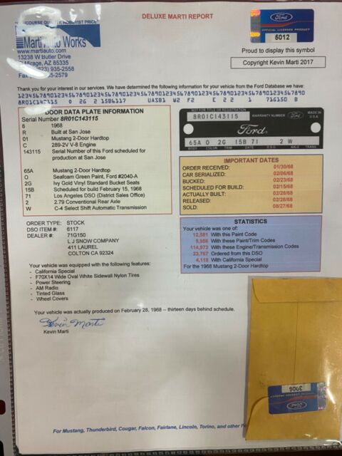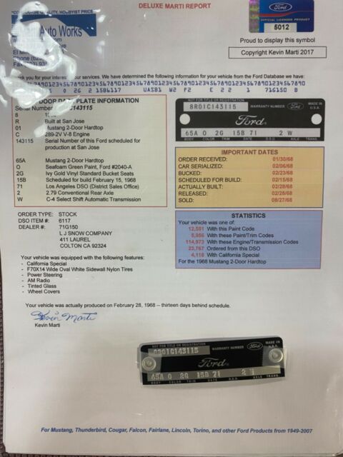 Watch VideoVideo will open in a new windowUsing the eBay App? Paste link into a browser window:[isdntekvideo] .ytvideo * { box-sizing:border-box; } .ytvideo { margin:.5em auto 40px auto; max-width:480px; font-family:arial; text-align:center; position:relative; min-height:120px; background-color:#555; } .ytvideo p { position:absolute; margin:0; color:white; background-color:rgba(0,0,0,.5); } .ytvideo .yt_hd { font-size:16px; width:100%; height:28px; padding-top:6px; text-align:left; top:0; left:0; padding-left:10px; overflow:hidden; } .ytvideo .yt_ft { font-size:12px; width:100%; bottom:0; left:0; } .ytvideo img { display:block; max-width:100%; border:0; } .ytvideo a:after { content:"\A0\25BA"; position:absolute; width:60px; height:40px; left:0; top:0; right:0; bottom:0; margin:auto; border:0; border-radius:10px; color:white; background:rgba(0,0,0,.6); font-size:24px; padding-top:11px; cursor:pointer; } .ytvideo a:hover:after { background:#CC181E; } .ytvideo .yt_inp { position:absolute; top:100%; left:0; width:100%; text-align:center; padding:.5em .2em; border:0; color:white; background: rgba(0,0,0,.7); } @media(max-device-width:960px){ .ytvideo { margin-bottom:60px; } .ytvideo .yt_inp { padding:1em .2em; } } ****CLICK ON LIVE VIDEO FOR WALK AROUND**** ***1968 FORD MUSTANG CALIFORNIA SPECIAL V8 289 CAR RUST FREE VERY CLEAN CALL TO BUY NOW*** ********ITS BEST TO CALL US NOW WITH SERIOUS OFFER 954 937 8271 ASK FOR ALEX THANK YOU******* SHIPPING AVAILABLE TO MOST STATES $400 TO $500 CALL 954 937 8271 THANK YOU. ***PLEASE DON'T SEND TEXT MESSAGES OR LONG EMAILS IF YOU ARE A SERIOUS BUYER CALL 954 937 8271 THANK YOU*** ALL VEHICLES SOLD AS IS NO WARRANTIES OF ANY TYPE. INSPECTIONS ARE WELCOME BEFORE YOU BID NOT AFTER. ALL DESCRIPTION ARE BASED ON OUR BEST OPINION... ALL PAYMENTS AND DEPOSITS ARE NON REFUNDABLE YOU ARE BIDDING ON A USED VEHICLE NOT NEW EXPECT MINOR FLAWS THANK YOU.SELLER ASSUMES NO RESPONSIBILITY FOR ANY REPAIRS NEEDED AFTER THE VEHICLE IS DELIVERED. ALL SALES ARE FINAL. BY PLACING A BID ON THIS VEHICLE YOU ARE ENTERING INTO A LEGAL AND BINDING CONTRACT TO PURCHASE THE ABOVE-DESCRIBED VEHICLE. I RESERVE THE RIGHT TO CANCEL ALL EXISTING BIDS AND END THE AUCTION EARLY SHOULD THE ITEM NO LONGER BE AVAILABLE FOR SALE. PLEASE EMAIL ME WITH ANY SPECIFIC QUESTIONS.