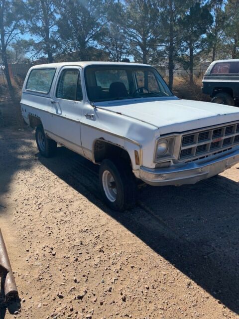 1974 Chevrolet K5 Blazer. This Blazer has the desirable completely removable top that is in good condition. It was originally Killarney green exterior with a green slate interior, which I believe was a one year color option. The floor pan, inner fenders front and back are in good condition. See SPID for the options / configuration of this Blazer. Has clear title1977 Chevrolet K5 Blazer original paint in overall decent condition and a special trim package, has rust on passenger side door sills and fenders, floor pans and front and rear inner fenders in good shape. Removable roof is in great condition on interior and is sun baked on exterior. Have excellent top on the 1977 GMC Jimmy as a replacement (see photos) See SPID for the options / configuration of this Blazer. Has clear title.1977 GMC Jimmy High Sierra roller. No engine or transmission. The Jimmy has rust around the fender lips and bottoms. Floors and inner fenders front and back are good. Removable top is in excellent condition both interior and exterior. Has clear title.To clarify; All 3 Blazers are located in Las Cruces, New Mexico and the starting bid is for all 3 blazers. They can be purchased individually as well.Note; I will not respond to low rated / new eBay buyers and if a "winning bid" is placed by one of the low rated / new buyers, I reserve the right to remove the bid at anytime, SINCE EBAY REFUSES TO MONITOR AND RESTRICT A*@hole posers. The Blazers are for sale locally on Craigslist. If you have any questions or need additional information, please contact me. Thank you. Brad
