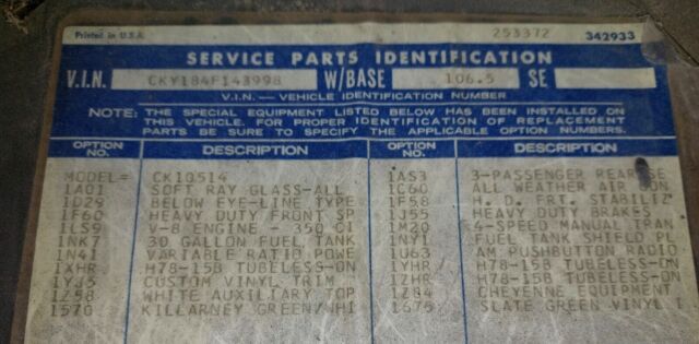 | VIN (Vehicle Identification Number): | CKY184F143998 | Mileage: | 1234567 |
