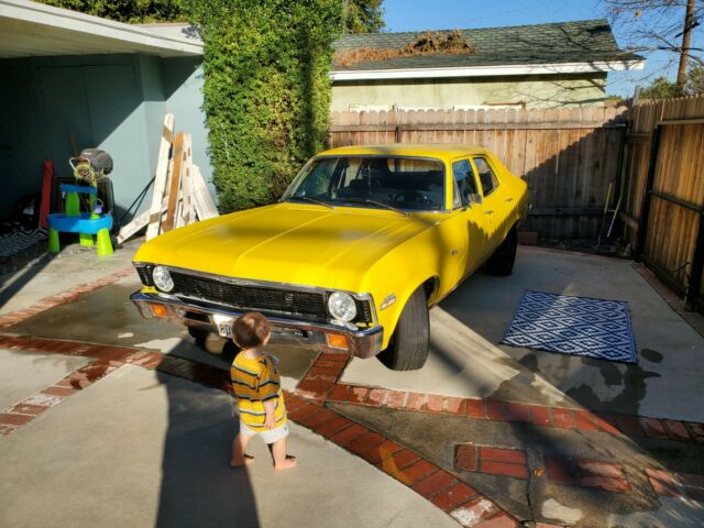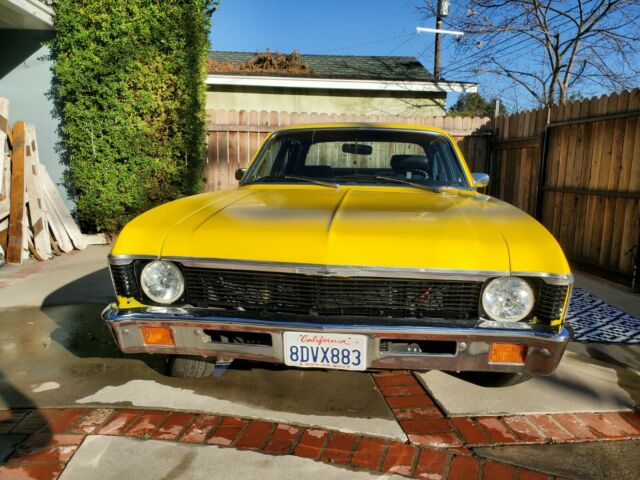 My wife is having our second kiddo soon, so I am reluctantly selling my...1972 Chevrolet Nova. 307 cid V8, Newly rebuilt TH350 automatic trans!NO RESERVE! Owned for four years. Daily driver for most of it. Done lots of work. Tubular Upper/ Lower Control arms. Front Disc brakes conversion. New brake booster. New master cylinder. DOT 3 brake flush. NEW A/C- Working Vintage Air A/C! Everything is there! NEW Compressor, Condenser, Bolt on dash unit with heater core/evaporator/ blower. It blows cold. I only took the a/c belt off recently so I could upgrade the mounting brackets. I didn't like the mounting setup and sometimes it squealed. I just haven't fixed it yet. The next guy will have to do it. But the A/C does work, and It's really awesome and rare to have on a muscle car! Lots of sanding, bodywork, primer, painted Chrome Yellow last year. I'm not a pro body guy, but I did my best. New Cold Case RadiatorNew 4 barrel Edelbrock Carb 1406New HEI distributorNew HeadersNew Hush mat under all the carpet/firewall/ trunkThis thing is really coming along nicely. It's not done, but it's really getting there. This is what I would fix next: The interior is about half done. Look at the photos and see the seats, carpets and door panels are there, but it needs a headliner, rear package tray, A/B/C pillar trim. The dash is missing a glove box, and the gauge cluster bezel. Most of the glass is old. Whoever did the weather strip/ molding (before my ownership) did a bad job. Most of it should be replaced. The front windshield is cracked. The side vent hinges are messed up, and the left rear window regulator should be replaced. The AC compressor bracket I mentioned alreadyThis is a fun ride, and people really love seeing it when you're cruising around. I will miss this car. Whoever wins the auction: Finish the interior, and fix the glass, and this thing is done! Local pickup or Buyer will have to arrange for shipping. Either way I would probably tow it. I was my daily driver, but it has been parked for a couple months, and it is a 50 year old car. Be on the safe side, tow it, check it out, and get comfortable with it. NO RESERVE! Bid Away! Best of luck!