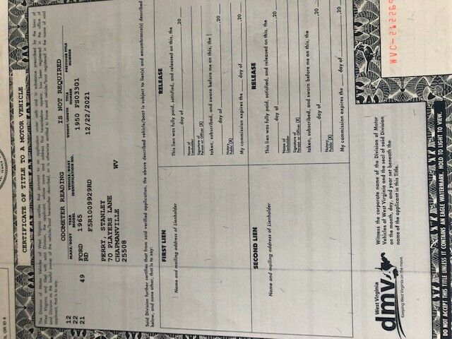 This is a Factory Five Racing 1965 (2020) MKIV Cobra replicaTitled as a 1965 Ford Roadster with Factory Five serial number see pic (also have hundred other pics just ask).Has never been licensed or driven on street just on my half mile driveway, starts, drives and powerful.Car was picked up December 2020Derogatory things first: Paint on a scale of 1 to 10 it is a 5 or 6 from 10 feet it is a 10 Front end has never been taken to alignment shop but steers good Speedometer is programmable but does not work properly Charging system shows charging 14 volts but battery goes low sometimes Turn signals do not workNow good things: Powdercoated frame, upper and lower tubular front control arms, Halibrand wheels(15") and new tires, winds wings,sun visors, FFR MkIV hood hinge, FFR seat track, 1991 rebuilt 5.0l engine new cam, lifters, injectors, gear driven timing set noisy sounds great, water pump, alternator and more FFR chassis and motor wiring harnesses over $1,000.00 New clutch, reconditioned Tremec 5 speed gearbox, 8.8 mustang with 3.73 ratio gears and front and rear changed to 5 lugThis unit is being sold 100% as-is. It is the sole responsibility of the customer to verify the existence of options, accessories and the vehicle condition before time of sale. Any and all differences must be addressed prior to time of sale. No expressed or implied warranties.Pickup only will help on pickup.Contact for more information or pics text 304-785-9622
