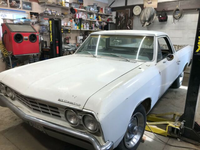 Great running and driving 1967 El Camino. Car came from Nevada, so the only rust is on the surface. Body is in really good shape for its age with minor scratches but no major dents. Interior is certainly useable and ready for your customization. Odometer shows 57,000 but is not registering new mileage. Title shows odometer is exempt due to age. Wipers, lights, turn signals, emergency brake, it all works. It's an inline 6. Runs good, no smoke. Recent tune up and carburetor. 15" rally wheels.Car is unmolested with a good body and frame making it a perfect starting point for your hot rod or resto project. Good base for a clone project also. New parts include:Front brake shoes, wheel cylinders, brake hoses, and tiresEmblems, side view mirrors, carpet, seat covers, door glass window felt, door locks, ignition switch, dash pad, and door panels.The left front fender needs to be replaced if you are going for a major restoration because it is not original and doesn't match the car. This fender has the only spot of Bondo on the car that I can tell.Bare bones car with an inline 6, no power brakes, no power steering, no A/C, no radio (radio delete car from the factory, delete panel is there), no power windows. Rust on the underside is very light and can probably be cleaned with just steel wool. Other needs from what I can tell would be door weather-stripping, headliner, and sun visors. Vehicle is for sale locally. Seller reserves the right to end the auction early.Rear bumper is bent and welded. Backup lights are missing.clean - Nevada Title