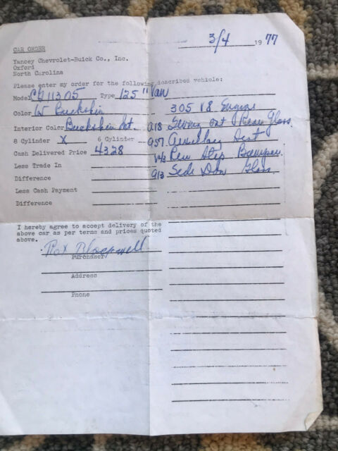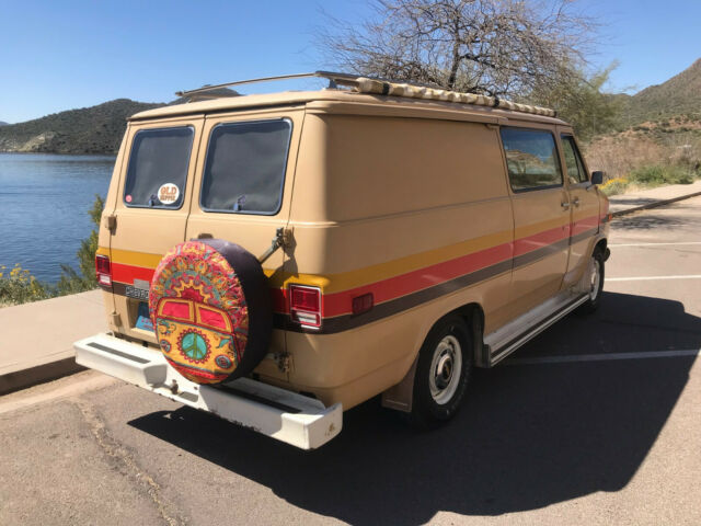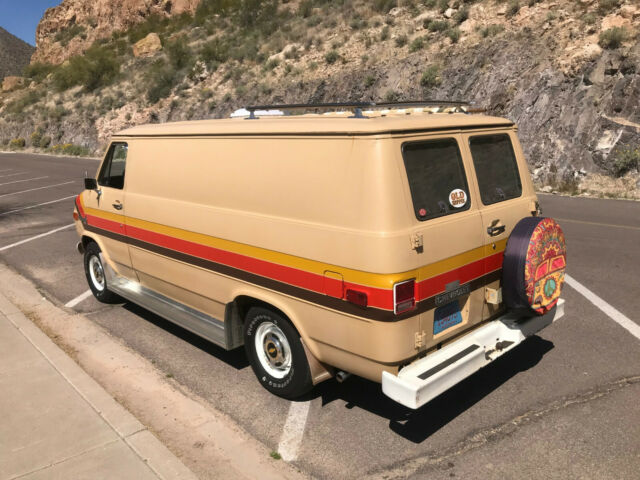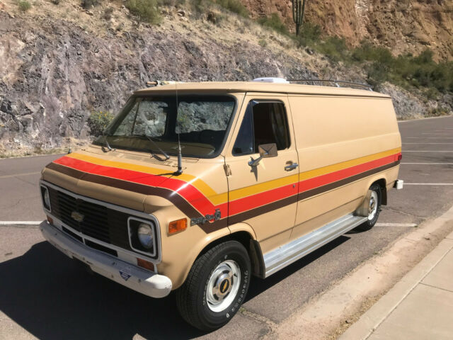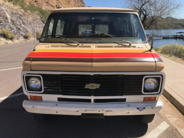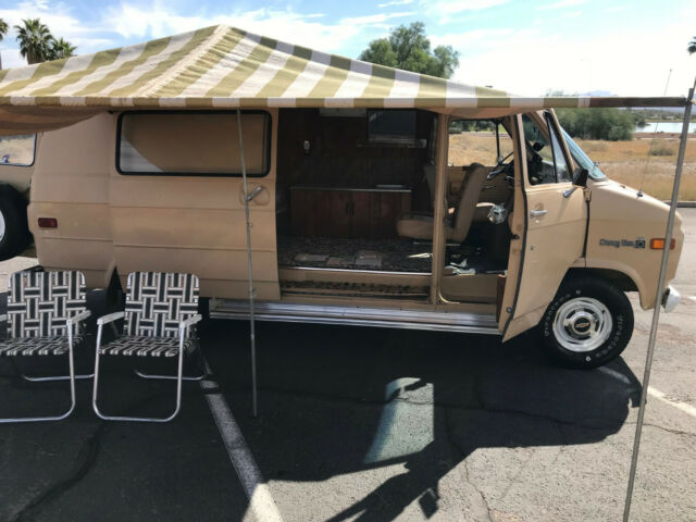 No Reserve (we are moving and decided to sell rather than ship)1977 Chevy Camper Van G10 Time Capsule, 102,000 original miles, original 305 ci and 3 speed manual transmission (3 on the tree!), manual steering (steers easy), original interior, original paint with added painted stripes, original spare tire, all original documentation, receipts and maps of campgrounds this van has ever been to. No rust on body and slight surface rust underneath, awning is perfect, wired for 110 with plug near back bumper to hook to power or generator - all outlets and lights work. New retro Firestone tires, new exhaust, new belts, new spark plugs, HEI distributor cap, and wires, new Monroe shocks, new complete brakes on all 4 wheels and master cylinder (work perfect no shakes or pulling), new battery, new vent cap on roof, new memory foam bed, new interior rug, working cb radio with PA speaker under the hood, working 8 track/am/fm radio with front and rear speakers, original near perfect swivel front seats, original steering wheel (not a single crack) with warning decal still in near perfect condition, all curtains and bug screens in great shape, all glass is perfect, recent oil change and full grease (all components in great shape), runs, shifts and drives perfectly. All lights work. No leaks to speak of -- not a drop of oil on concrete. Basically a one owner van older gentleman kept everything near perfect and hand wrote all oil changes under the hood in several places with black marker. No smells or dirt anywhere. Coolest camper van in the nation - try to find another in this original condition -- these vans are very hot right now. Must see - 20 minutes from Barrett Jackson in Fountain Hills, AZ. Drive home to anywhere and camp along the way - honestly drives like new, great power, no chatter in the clutch, shifts with no grinding, easy to steer and brakes are perfect. Call with any questions or to see 612-987-1878. Clean title ready to go no sales tax.