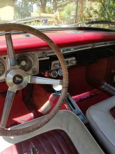 Estate Sale: Join the '67 Bullits Ford Mustang and Corvette in the Fastback following. It's a MOPAR 1965 Plymouth Barracuda, costing a fraction of others. Original Calif. black plate, i.e. no chassis rust. It's a well established collectors classic and muscle car that has only been used as an occasional driver for the last 25 years.Same owner since '96, when renovated. Runs great, just drove 120 miles last trip. Registration current on Non-Op just last year. Driving video on freeway available on request. 93k miles. Its has a fresh performance Six and Automatic. Racing Tach and gauges. Original red carpet with new Cuda logo Mats. It needs surface rust on the top sanded down a dozen places, and Half a new paint job, factory Maroon Red on top. White strips. Driver seat bottom needs recovering to match.With a performance Six, it had not been raced as it would have been with a V-8. Not a show car but a reliable daily driver, all complete and functional for a tour or cruise. Use as a commuter and get your share of bragging rights. You can find a better one, but not for less. Will cooperate with buyer shipping agent after payment is made in full. If you win with Buy It now, it can be delivered up to 100 miles, or more at my cost of $5 for each additional mile after that.