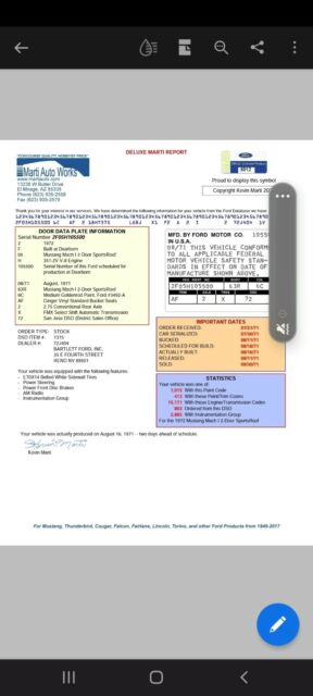 @import url(https://fonts.googleapis.com/css?family=Roboto); About this vehicle This 1972 Ford Mustang Mach 1 351 is an original with updates to the interior. The owner has had it for 5+ years. The vehicle is drivable and is not regularly driven. Seller's Notes There is a Marty report that I can send to seriously interested people. As far as I can tell everything on it is original except for some minor modifications. The engine and transmission have not been checked for matching numbers but there is a high likelihood that they do match. Vehicle Details This is a 1972 mach 1 Mustang that I purchased back in 2011 as my 1st car. I added flow master 40 series exhaust and had to restore the brakes and a few other maintenance tasks. It runs great and everything has been serviced on it to a point where it was running amazing when I parked it in 2011 and then it sat in storage for 10 years. I have not started it or done anything to it since getting it out of storage. It definitely needs to have the fuel lines looked over and some other minor things things to get it ready ready to start after being in storage for so long. Exterior Interior Engine Download the eBay Motors app