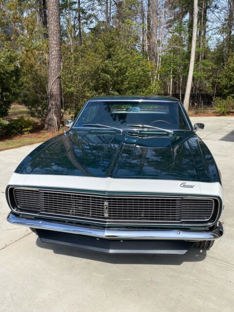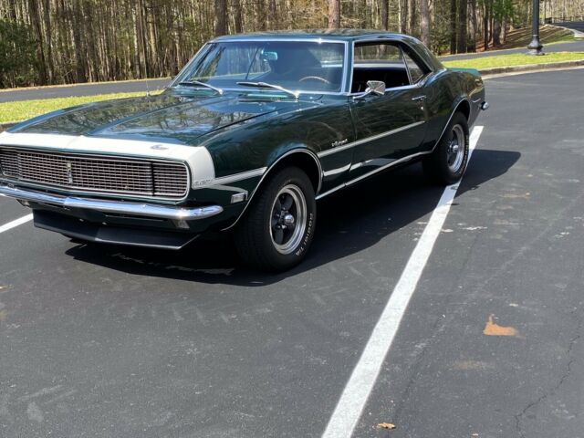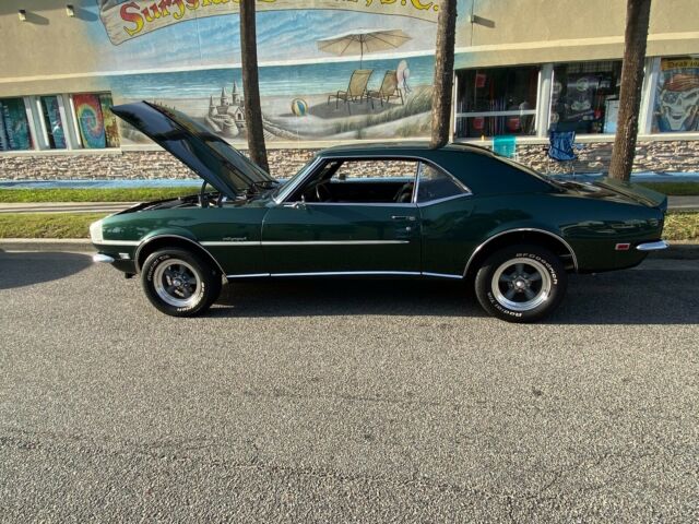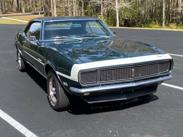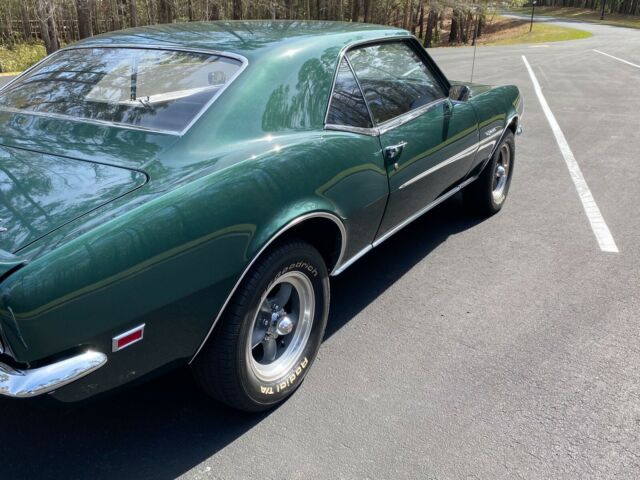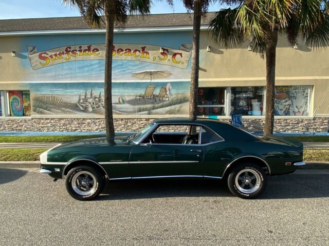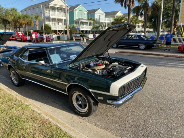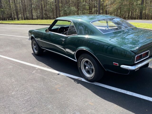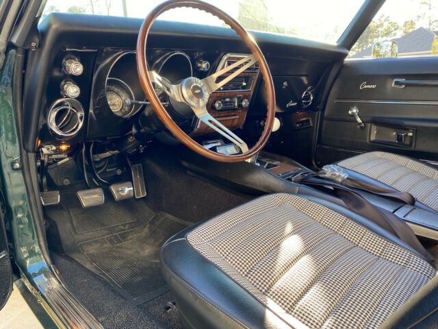 1968 Chevrolet Camaro RS, offered in British Green (zz), one of five Corvette colors offered for only six months in 1968. This was the only time a 1st Gen Camaro was offered in British Green. It is believed that only 6% of the 1968 production was British Green. As this vehicle was built in mid-late July, it certainly was one of the last RS' made in this color which is still on the road! This car underwent an extensive rotisserie restoration with much of the work completed by Lucas Restoration from Maryland, one of the top 1st Gen Camaro restorers in the Country. This vehicle has been owned for 8 years, garage kept with no exposure to rain nor any inclement weather and has approximately 3500 miles since being restoredExteriorOriginal Cowl tagFront/Rear SpoilersRally Sport PackageAll original glass except front windshieldAmerican torq thrust 15" wheelsD90 Sport StripeMechanical Original 327 block - code V07711MA - manufactured 7/11/68 Flint for a manual transmission vehicle- G18 stampEngine casting- 3914678- (1968 327 with 4" bore) Same block as used on Z28Mild comp camEdelbrock dual plane manifold with Edelbrock 625 cfm carbOriginal exhaust manifolds restoredPertonics electronic ignitionOriginal Saginaw M20 4 spd transmission (3925656-A10) included but upgraded to Muncie- 4 spd w/ Hurst shifterPower front Disc brakesOriginal PSFactory A/C car with upgraded air to Vintage12 bolt posi with 3.55Gardner Dual exhaust system ( factory correct replacement system) Interior Upgraded original (722) interior to Custom Deluxe Houndstooth using original seat framesOriginal center console with gauge packageOriginal Tic-Toc dashWood steering wheelFully insulated floorOER floor mats and houndstooth trunk mat *this vehicle is sold as is by the seller and maybe withdrawn for sale at any time and for any reason
