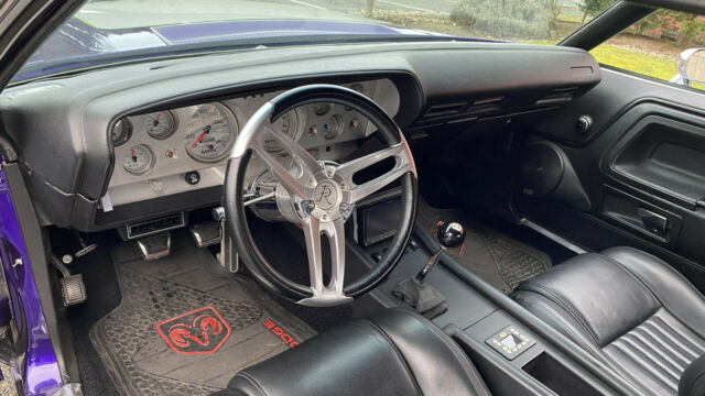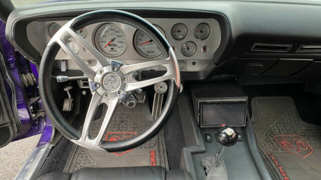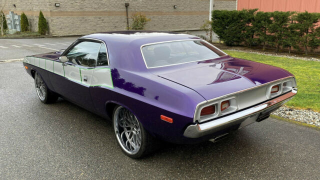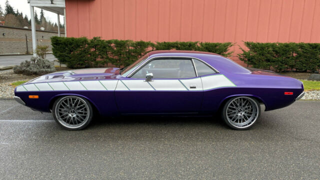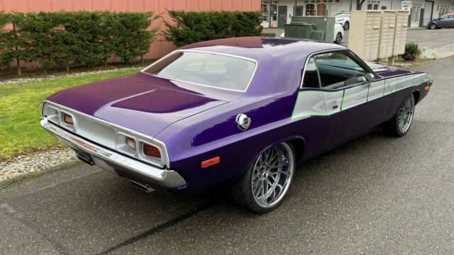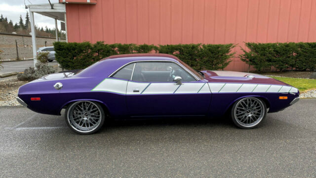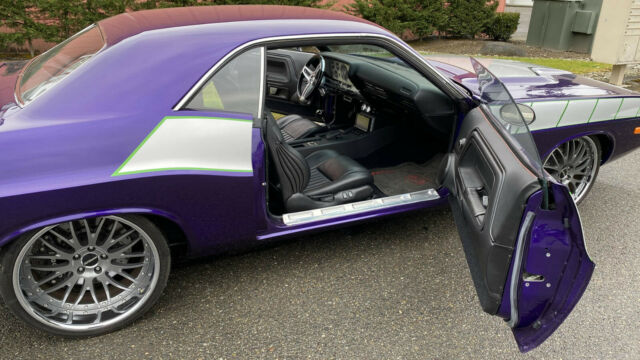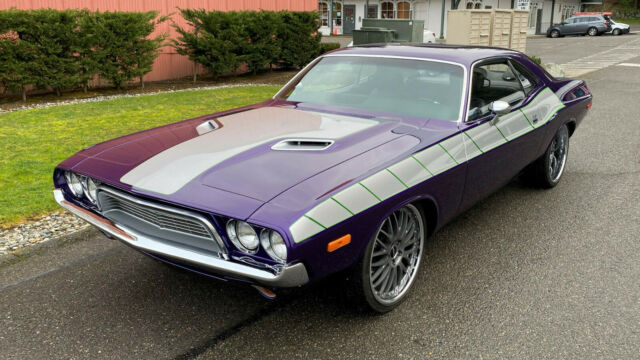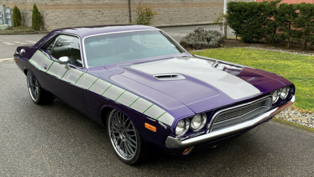 Description: 1973 Challenger 5.7 Hemi Twin Turbo Pro-touring show car (chemically dipped body-off 3 times) Gray epoxy primed, new fenders, hand-built inner fender All precision fitted to the car, RT hood function scoops Painted plum crazy pearl candy, left rear fender replaced New trunk lid, hood & trunk lid finished perfectly New marker lights, dual radiator fans Fast electronic fuel injection system Alarm system, auto lock power, subframe connectors Engine compartment totally detailed Ceramic coated headers, X-Pipe Flowmaster 2006 5.7 Hemi with dual Rotomaster/Garrett turbochargers Custom built intercooler (polished) computer controlled Polished blow-off valve, K & N air filters Remote oil filter, Optima Yellowtop batteries Polished power steering & clutch reservoir Polished windshield washer tank Tremec 5-speed modified by Keisler with line-lock Custom driveshaft, Lakewood bellhousing Keisler flywheel dual friction clutch Rectangular tube front crossmember Adjustable upper & lower control arms Power rack & pinion, 13" rotors, Wilwood calipers 2-piece Forgeline wheels - 20x10 rears & 20x8 fronts 8.8 rear-end with 3:73 posi, all AutoMeter gauges Complete car has Dynamat & jute insulation Ididit chrome steering column, 2006 Trans Am 6-way power buckets Cutom rear seat, new headliner & door panels Thousands spent on stereo system, Specialty Power Windows Breathtaking paint, tons of clear, covers all graphics Over $200,000 spent on build V.I.N. JH23G3B503679 Stock # 25676 4,057 miles $98,800 For more info please call Louis Lamb 425-343-7079 or Adolfo Sandoval 206-683-5855