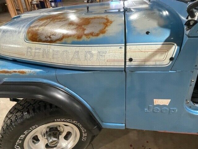 V8 CJ5 Renegade Levi EditionFor those of you that know CJs - I think you will find that not many were made like thiswith this option configuration.Levi rear seat included (original)An original dealer installed center consoleAn original dealer installed speaker systemOriginal working heat controlsamazing find - preserved in functional usable way using rat-rod coatingTheft recovery - I bought it from Allstate insurance company - it was stolen and vandalized hence the salvage title - all documented.No debate - there are lots of fully restored CJ available - I just saw one the other day that had $50K in work done to it (even the underside of the body panels were painted to the same standard as the top side.But it didn't have the magic that this one has - This Levi Edition Renegade draws a crowd where ever it goes. At a fraction of the cost.Strong 304 V8 with a smooth shifting manual transmissionnew springs and shocksSome extra parts available (included) - extra set of springs, and a new floorpan ($1000)Recently tuned - drive anywhereIf you need shipping assistance - I use central dispatch and can help arrange that for you.