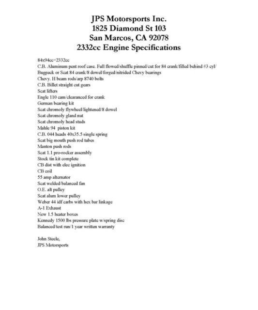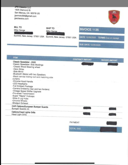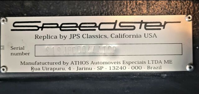 RUNS GREAT!!! CAR WAS BUILT IN 2020. 1169 MILES.SELLING TO MAKE ROOM IN MY GARAGE FOR OTHER CARSThis JPS Motorsports âClassic Speedsterâ is a replica of a Porsche 356 Speedster that is powered by an air-cooled 2,332cc flat-four paired with a Pro Street four-speed manual transaxle. The fiberglass body is finished in black and paired with a color-coordinated soft top. Additional equipment includes light brown upholstery, a Shotgun exhaust system, a wood-rimmed steering wheel, European-style bumper guards, a Vintage Speed shifter kit, LED headlights with protective grilles, front fender-mounted mirrors, and a Bluetooth-capable Kenwood stereo with two speakers. The car was purchased in October 2020 by the seller. This 356 Speedster replica is offered with its original invoice, an engine specification sheet, and a clean New Jersey title in the sellerâs name listing the car as a 2020 model.The body is constructed of fiberglass and is mounted on a tubular chassis. This example is finished in black with a folding black canvas top, and options installed include a chrome hood handle, European-style bumper guards, shotgun exhaust tips, LED headlights with stone grilles, chrome side moldings, gold Speedster and Carrera emblems, and fender-mounted mirrors.Chrome-finished 15â³ wide-five wheels wear matching chrome Porsche-crest hubcaps and are mounted with 185/65 Starfire Solarus AS tires. Equipment includes five-lug hubs, four-wheel disc brakes, and independent suspension.The interior features low-back bucket seats trimmed in light brown upholstery with a color-coordinated upper dashboard pad and door panels. A Vintage Speed short-throw shifter kit was optioned on this example, and additional amenities include two-tone sisal floor mats and a Bluetooth-capable Kenwood CD stereo hooked to two speakers.The wood-rimmed steering wheel sits ahead of green-letter instrumentation consisting of a 6k-rpm tachometer, a 120-mph speedometer, and gauges for oil temperature and fuel level. The photographs were taken before additional miles were added, and the seller states that the five-digit mechanical odometer shows 1,100 miles, 300 of which were added under current ownership.The air-cooled 2,332cc flat-four was built by JPS Motorsports and is equipped with dual Weber carburetors, Manton pushrods, MAHLE pistons, an Engle Cams camshaft, C.B. Performance straight-cut camshaft gears, and SCAT chromoly flywheel, head studs, pushrod tubes, and lifters. The engine is said to have produced 175 horsepower when new according to the seller.Power is transferred to the rear wheels through a Pro Street four-speed manual transaxle. Additional underside images are provided in the gallery below.The riveted data plate mounted in the front trunk denotes this example as serial number S19JPC0044ATSP manufactured by ATHOS Automoveis Especiais LTDA in Brazil.