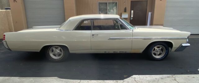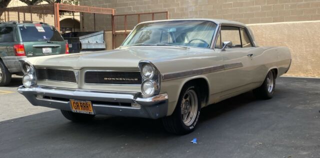 This is a 1963 Yuma White Pontaic Bonneville did have a 389, now hs a 455 from a Trans Am, and good shifting 400 turbo. I drive it but it misses, I did a leak down and I think its a head gasket, .The number 4 and 6 cylinder has no compression. I do have a head gasket kit that goes with the car all other cylinders have 155 LBS. this car sat in the desert for 15 years before I got it. All interior is original but needs to be restored, the dash chrome is pitted, door handles are available. There is no rust in the body at all, it has front disc brakes and power steering. It use to be a old race car that was driven on the street. I was going to install an LS with overdrive and make it a nice cruiser or fix the 455, but life took me into a different direction, so my loss is you gain. I am open to offers or trades just let me know what you have.Any questions or different photos are needed please let me know and leave a message.gtspipe@gmail.com661-251-9225 Tony