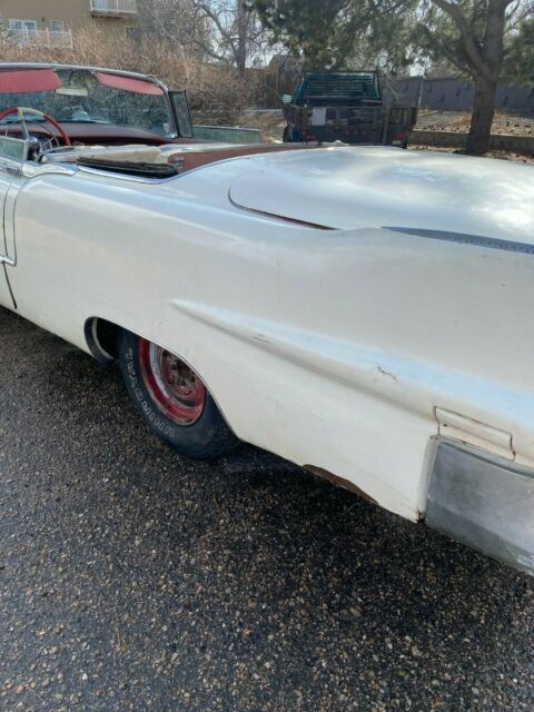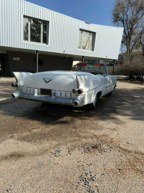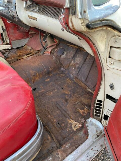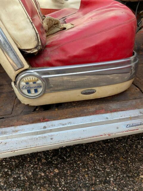 This is great builder candidate Eldorado, will be a gorgeous car when completed. this car is NOT running. It appears to have been made in the colors you see now, white, with red and white interior. This is a fairly unmolested car, engine compartment almost appears untouched, original interior, radio, and so on.This is a very complete numbers matching engine 1955 Eldorado. This car will need rust repair in the floors and trunk. the frame and structural mounting pieces look good and i've included pictures of these areas. There has been some bad amateur body work done in the rear area of the car, but i was told by a paint/ body man it's not hard to make the quarter patch panel since it's just flat with very little contour. there are small areas of rust on front fenders. there appears to be NO rust in the trunk lid, hood, and doors.It doesn't need a full trunk, it's 90% very solid, just patches in my opinion. ALL of the factory 2 four barrel setup is here. all the linkages, tubing, everything. Nearly impossible to find some of that stuff. glass appears good except drivers door is cracked.what i know is missing; gas tank, passenger side wheel well trim, thin trim for rear on round bumped out area. (gas tank and thin trim strips available reproduction)previous owner bought all the metal to completely redo floors and patch the trunk. as well as inner and outer rockers. this goes with the car. also 5 eldorado only saber wheels go with the car, all in average driver quality condition. in addition the nearly impossible to find floor mats are included. i DO NOT have the parade boot.in addition--- i have a bunch of extra parts that could get thrown in with the car, depends on how long it takes to sell since i am listing them here on ebay almost daily. when the car sells, i'm just putting the rest in the trunk and not listing any more. for example a beautiful set of seat motors w/ brackets, 30-plus pieces of trim, 2 extra power brake units, PS pump, door handles, complete window wash jar, complete heater fan/ motors/ housings, nice windshield, sun visors, and on and on. i'll estimate easily $3000-$4000 worth of parts. these ARE NOT parts the car needs to be complete, but duplicates you can either upgrade with or sell.i've restored one of these and i know these cars very well. on a scale of 1 to 10, 10 being the easiest/ best project 55 Eldorado to restore, this is probably a solid 6 in my opinion. i base that mostly on how complete it is. $10,000 of this auction goes to CURE International. a Christian Charity that provides truly life changing surgery for children with various birth defects and disabilities.note; rear bottom seat IS INCLUDED, just not in pics to show floor