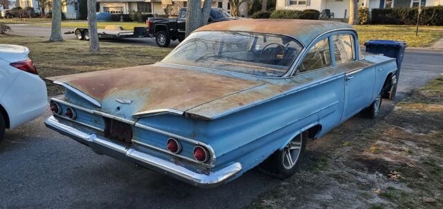 @import url(https://fonts.googleapis.com/css?family=Roboto); About this vehicle This 1960 Chevrolet Impala is a project vehicle. The owner has had it for 1 year. The vehicle needs work and is not regularly driven. Vehicle Details Selling a 1960 Chevy Impala/Belair 2dr post for parts or total restoration. The car is currently a roller, no motor or trans. It is ready for that 348 V8 or LS swap. Car has been off the road since 1975. It will need full floor pans and a full trunk pan for starters. Someone already cut out the floors in preparation for new floor pans. Trunk pan still needs to be cut out and replaced. The car has a very solid "x" frame, no rust or rot. The car is missing the front bench seat and the factory steering wheel, otherwise complete. The glass is all good except the drivers wing window, it is cracked. I have all the trim for the car and the hub caps. The car is being sold with a bill of sale only. This car is from a state that does not issue titles on cars this old. No title. The factory VIN plate is still in the door jamb. Car rolls easy for loading. Must be picked up with a rollback or trailer with a winch. Winning bidder is responsible for shipping. I do not provide shipping. A $500 non refundable deposit is due imediately following auctions end. Vehicle will need to be picked up within 7 days of auctions end and the balance to be paid in full in cash and in person upon pickup. I cannot provide storage, sorry. Please ask any questions prior to bidding. I am willing to negotiate on price a little through messenger and will change my buy it now price for a serious buyer/bidder. Good luck bidding and thank you. Exterior Interior Engine Download the eBay Motors app